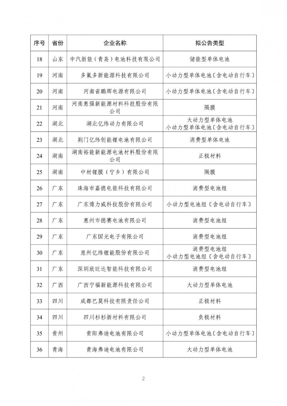 2月28日,工信部正式下发了符合《锂离子电池行业规范条件》企业名单(第九批),即锂电池白名单。本次入围的共有36家企业,其中储能电池包含赣锋锂电、宜春国轩、中汽新能青岛,其他企业公示分类包含动力电池、正极材料、负极材料、隔膜以及消费电池等。