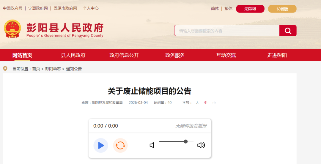 能源圈获悉,3月4日,宁夏固原彭阳县发展和改革局发布关于废止储能项目的公告。