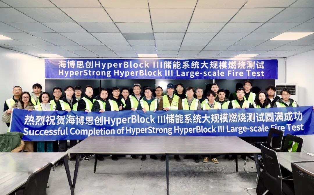 近日,在国际权威认证机构CSA、北美注册消防工程师(FPE)及战略客户的全程见证下,海博思创旗舰储能产品——HyperBlock III 储能系统顺利通过了大规模燃烧测试。本次测试不仅邀请海外客户亲临现场观摩,并且在行业内首次实现储能系统大规模燃烧测试全球实时直播,40余家全球战略客户受邀在线共同见证,充分彰显了海博思创对HyperBlock III储能系统卓越耐火设计与高效隔热防护性能的强大信心。