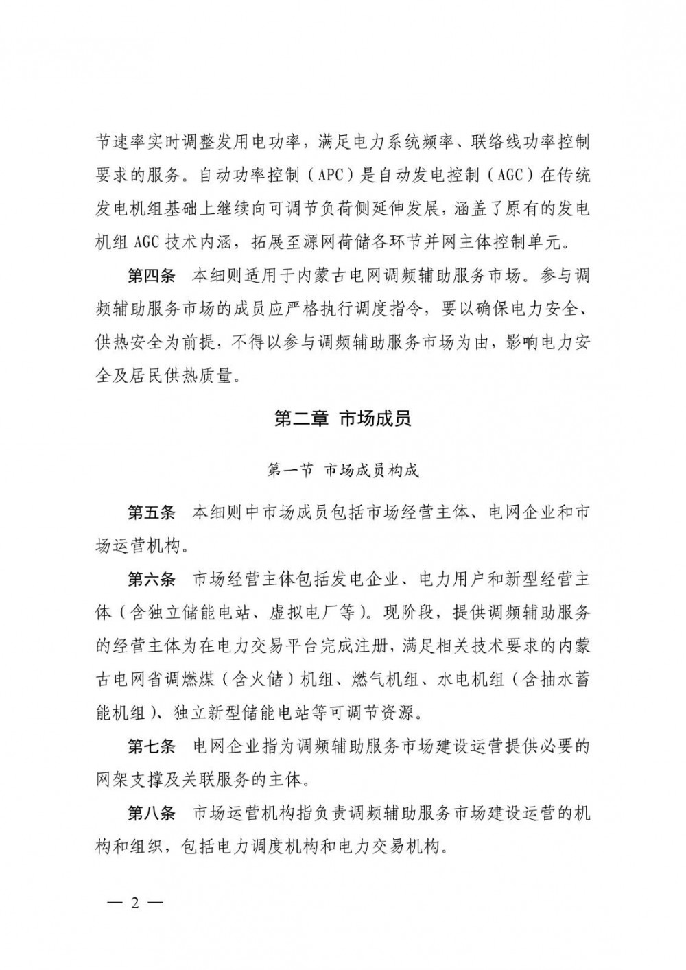 市场经营主体包括发电企业、电力用户和新型经营主体(含独立储能电站、虚拟电厂等)。现阶段,提供调频辅助服务的经营主体为在电力交易平台完成注册,满足相关技术要求的内蒙古电网省调燃煤(含火储)机组、燃气机组、水电机组(含抽水蓄能机组)、独立新型储能电站等可调节资源。调频辅助服务提供主体以APC单元作为参与调频市场的交易单元。煤电(含火储)机组、燃气机组以单机作为调频单元。独立新型储能电站作为一个调频单元,装设厂级AGC的水电可选择全厂作为一个调频单元。