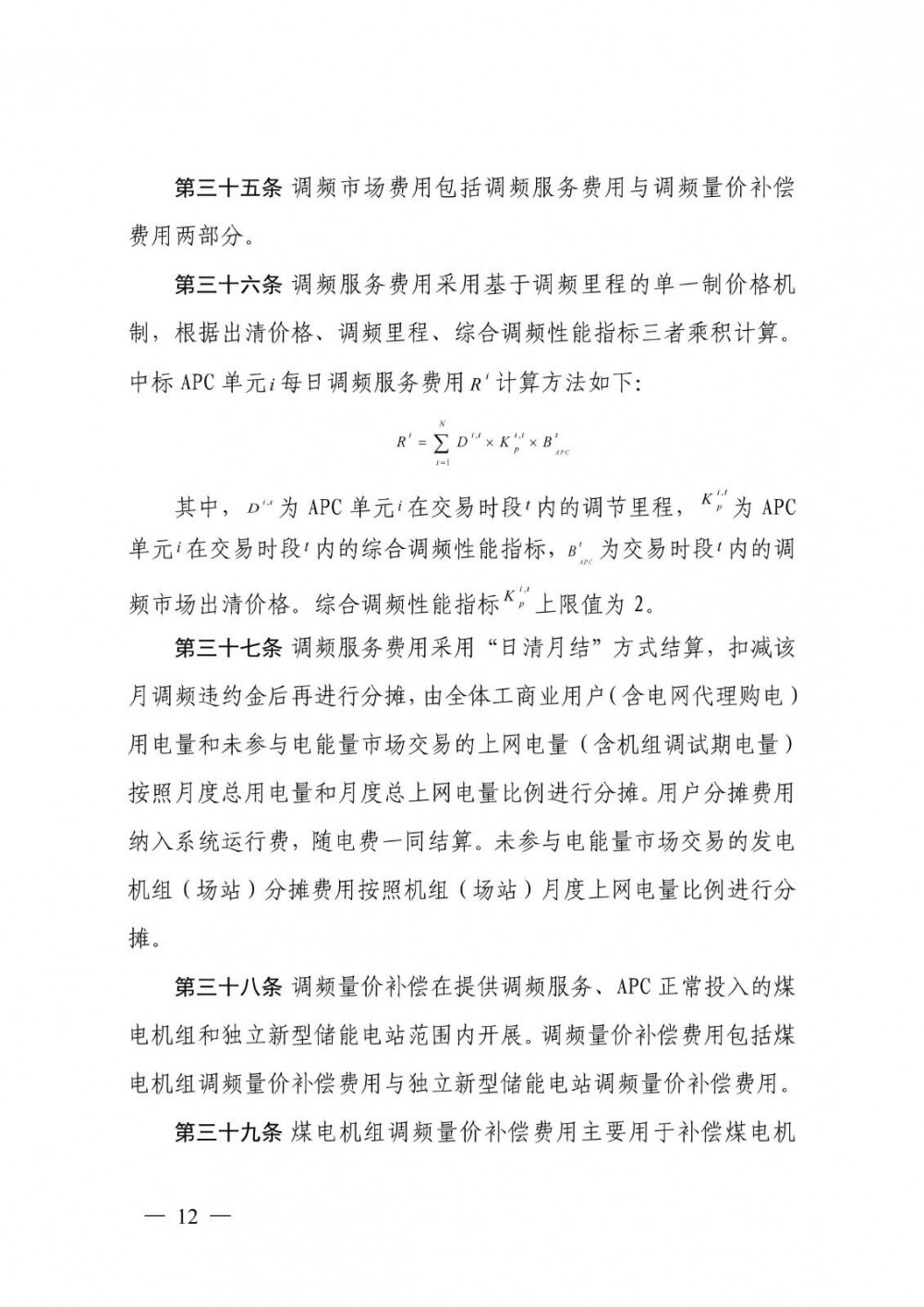 最后一个中标的APC单元调频里程排序价格为调频市场的统一出清价格,出清价格上限为15元/MW。