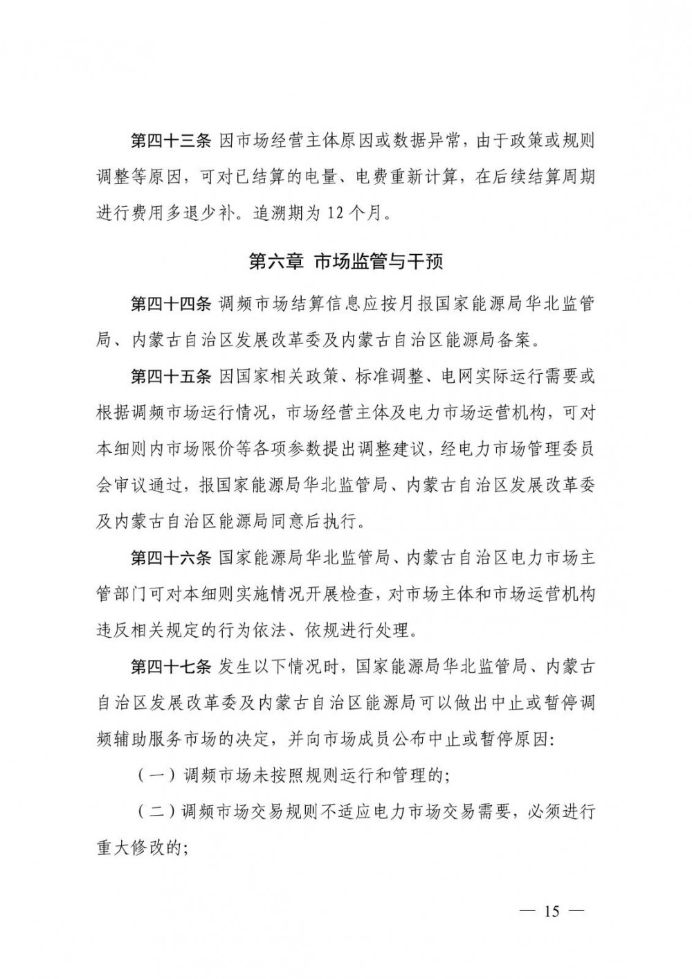 华北能源监管局关于征求“蒙西电力调频辅助服务交易实施细则”意见的函