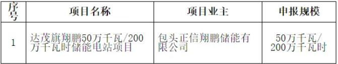 2026年3月5日,内蒙古达茂旗发展和改革委员会发布包头市达茂旗2026—2027年新增独立新型储能建设项目优选结果的公示,项目名称为达茂旗翔鹏50万千瓦/200万千瓦时储能电站项目,申报规模为500MW/2GWh,项目业主为包头正信翔鹏储能有限公司。