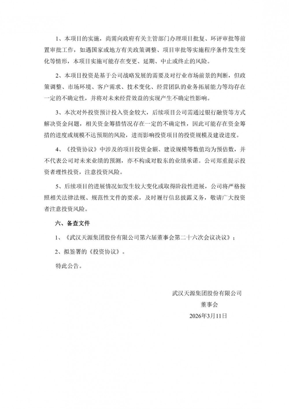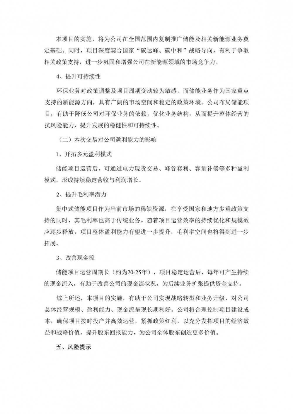 储能项目的落地,推动武汉天源能源业务从单一的发电运营模式,向“绿电生产—存储—消纳”全链条延伸,有效提升能源业务的附加值和抗风险能力。同时,项目所需的储能装备,可与公司高端环保装备制造业务形成显著协同效应,助力装备制造业务向新能源领域加速拓展。