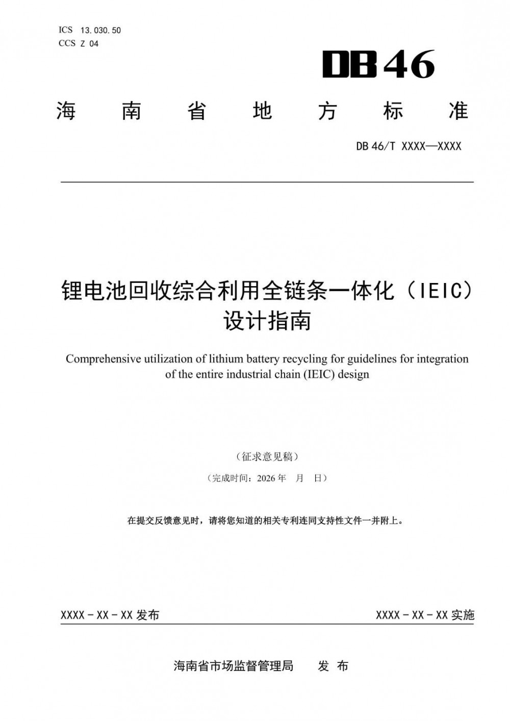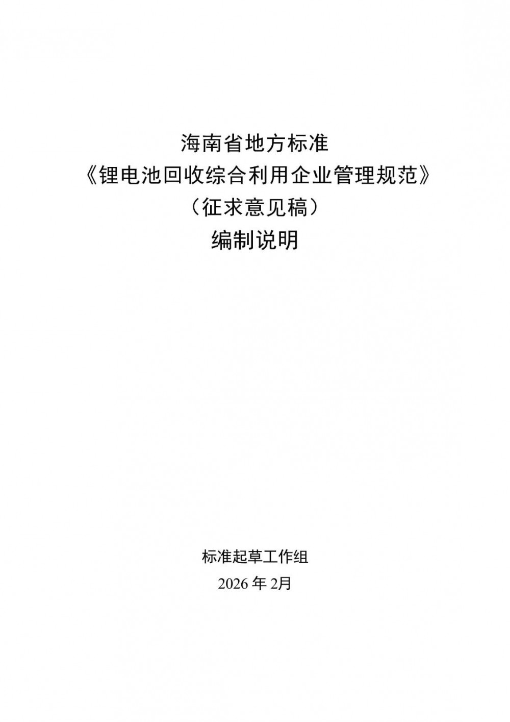 海南省市场监督管理局关于征求《锂电池回收综合利用企业管理规范》2项地方标准意见的通知