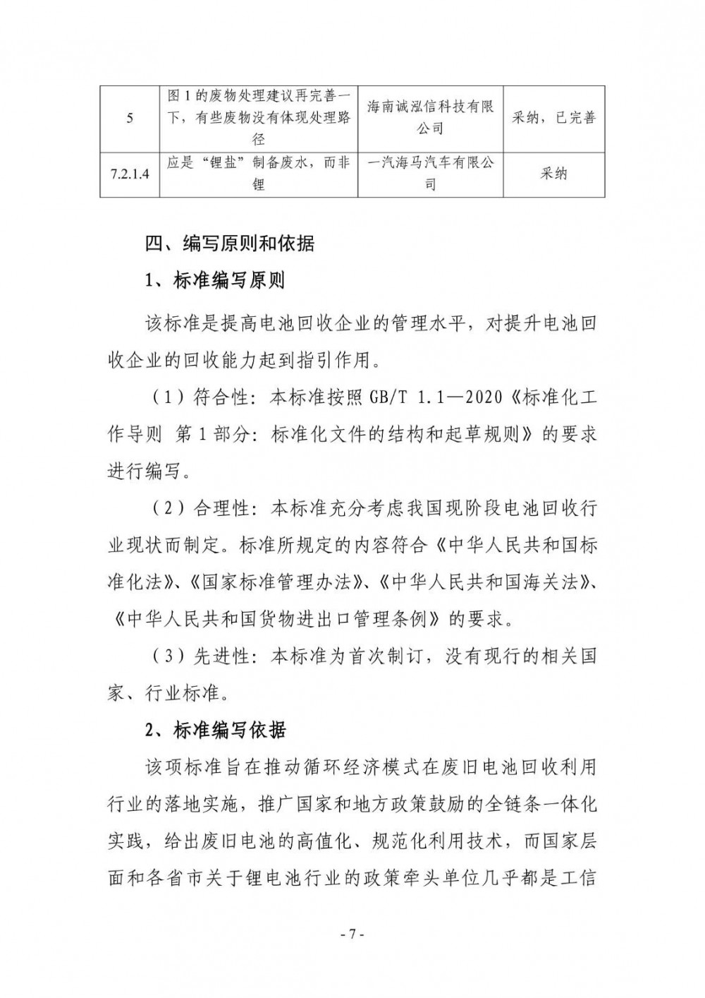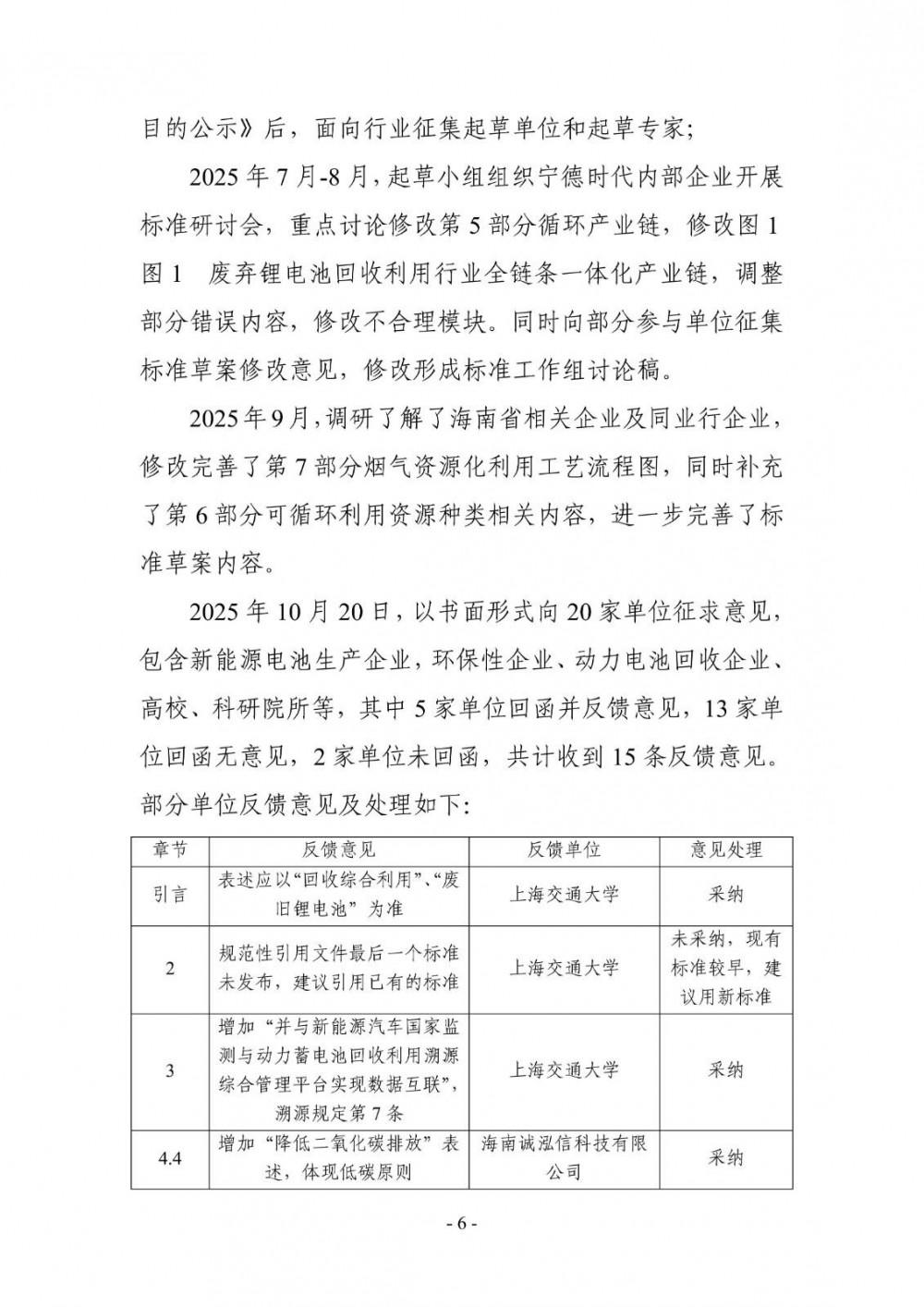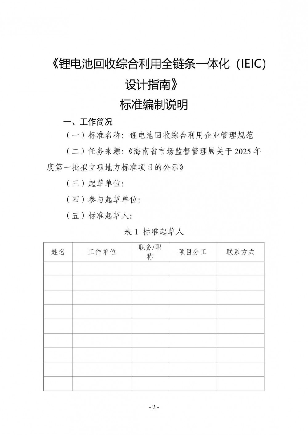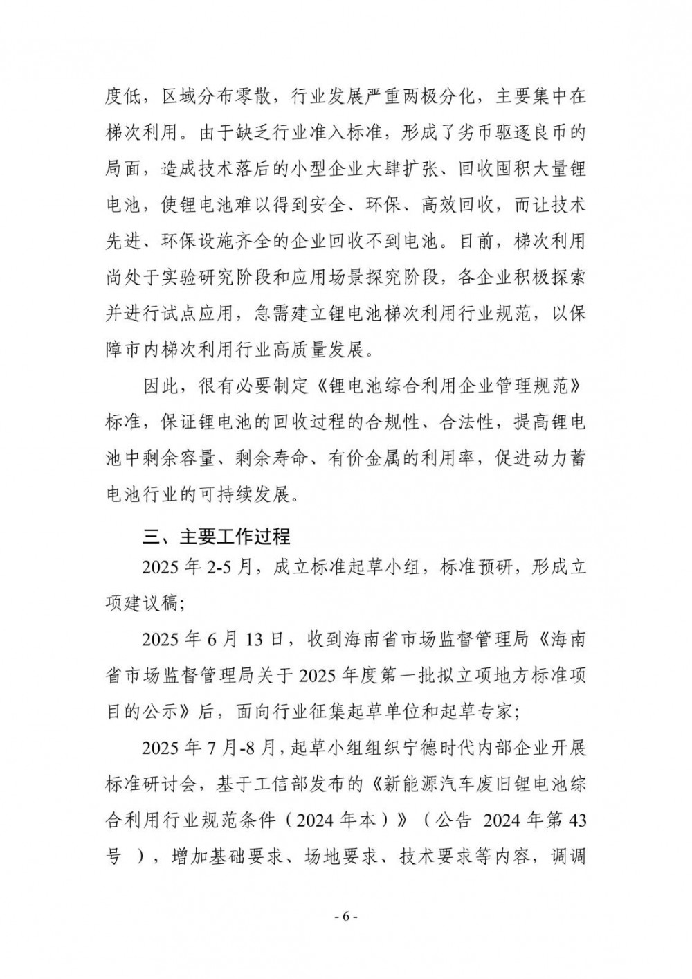 根据海南省地方标准制修订项目计划的通知要求,由省工业和信息化厅提出并组织起草了《锂电池回收综合利用企业管理规范》《锂电池回收综合利用全链条一体化(IEIC)设计指南》2项地方标准,标准征求意见稿及编制说明见附件1-4。根据《海南省地方标准管理办法》有关规定,现面向社会公开征求有关地方标准的意见。