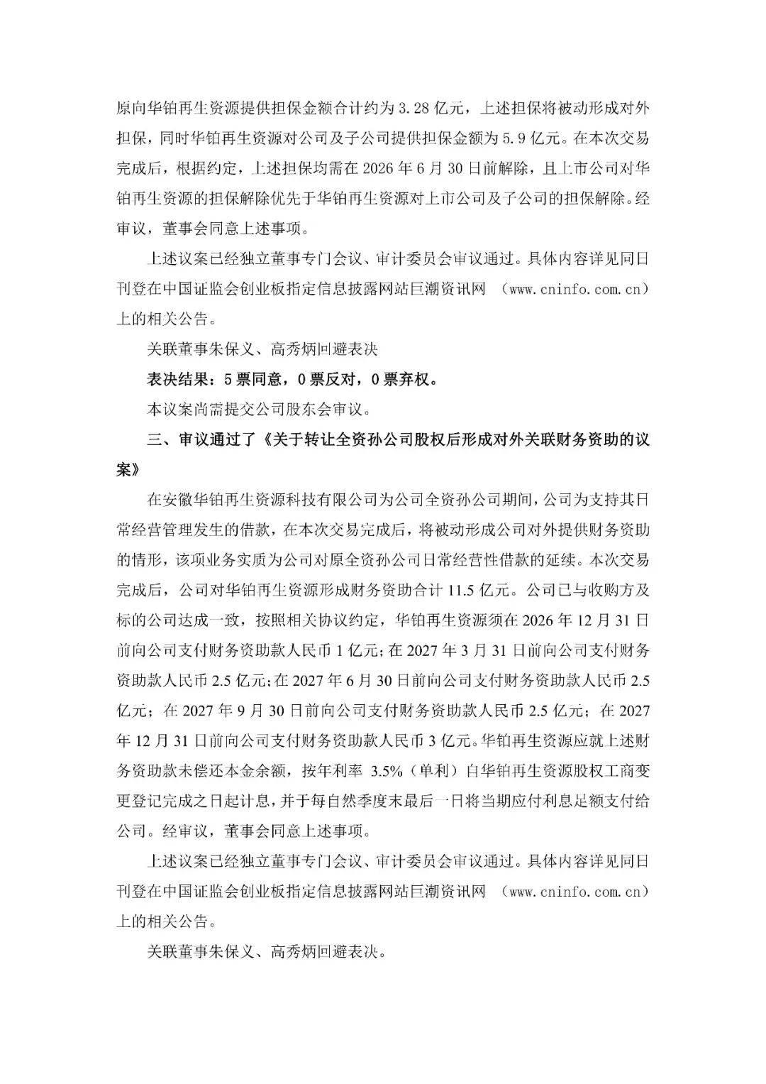 公告称,根据经营发展战略需求,为调整产业和产品结构,全力聚焦AIDC 锂电储能,促进经营资金回流,实现公司战略聚焦,完善锂电产业一体化布局,提升技术与市场竞争力,推动业绩稳步改善与长期价值增长,经审议,董事会同意公司将公司从事铅回收的全资孙公司安徽华铂再生资源科技有限公司(以下简称“华铂再生资源”)100%股权转让给安徽省厚基联能运营管理合伙企业(有限合伙),交易作价为14.15亿元。