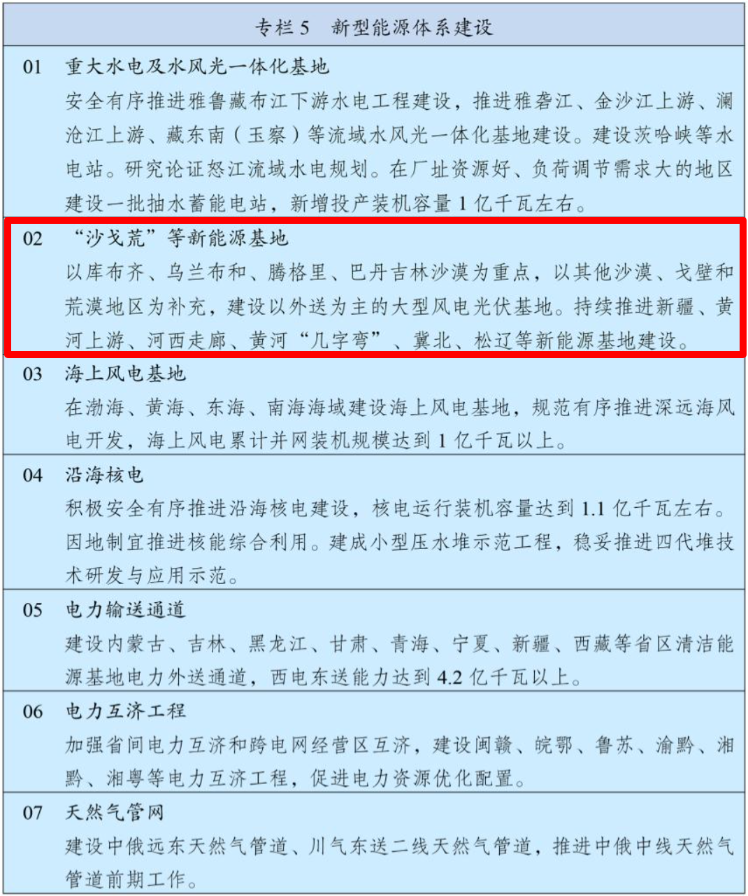 加力建设新型能源基础设施。深入实施能源安全新战略,加快构建清洁低碳安全高效的新型能源体系,建设能源强国。推进非化石能源安全可靠有序替代化石能源,坚持风光水核等多能并举,实施非化石能源十年倍增行动。统筹就地消纳和外送,建设“三北”风电光伏、西南水风光一体化、沿海核电、海上风电等清洁能源基地,加强分布式能源就近开发利用,布局发展绿色氢氨醇,积极推进光热发电和地热能利用。加强化石能源清洁高效利用,推进煤电改造升级和散煤替代。着力构建新型电力系统,全面提升电力系统互补互济和安全韧性水平,优化全国电力流向和跨区域通道布局,加快智能电网建设,完善城乡配电网,科学布局抽水蓄能,大力发展新型储能。提高终端用能电气化水平,推动能源消费绿色化低碳化。基本建成全国统一电力市场体系,完善油气“全国一张网”运行调度机制。