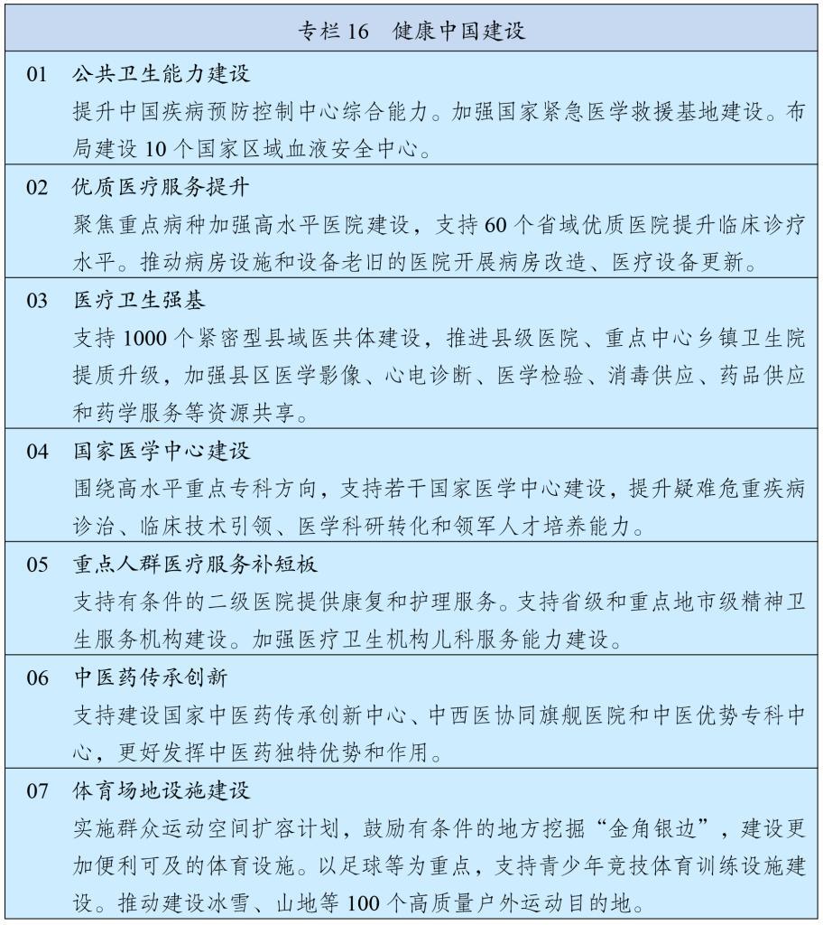 围绕实施国家发展规划,健全政策协调和工作协同机制。将国家发展规划作为宏观政策取向一致性评估的重要依据,确保各类政策发力方向符合国家发展规划要求。强化中期财政规划和年度预算安排对规划实施的财力保障,中央财政资金优先投向规划确定的重大战略任务、重大政策举措和重大工程项目。金融政策要积极支持规划确定的重点发展领域。坚持项目跟着规划走、资金和要素跟着项目走、监管跟着项目和资金走,加快规划确定的重大工程项目审批核准,优先保障规划选址、用地用海和资金需求,单体重大工程项目用地等要素需求由国家统一保障。加强对重大工程项目的伴随式穿透式监管和全过程全周期安全管理。