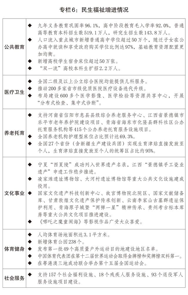 (八)为人民群众多办实事,更大力度保障和改善民生。坚持尽力而为、量力而行,加强普惠性、基础性、兜底性民生建设,持续增进人民福祉。