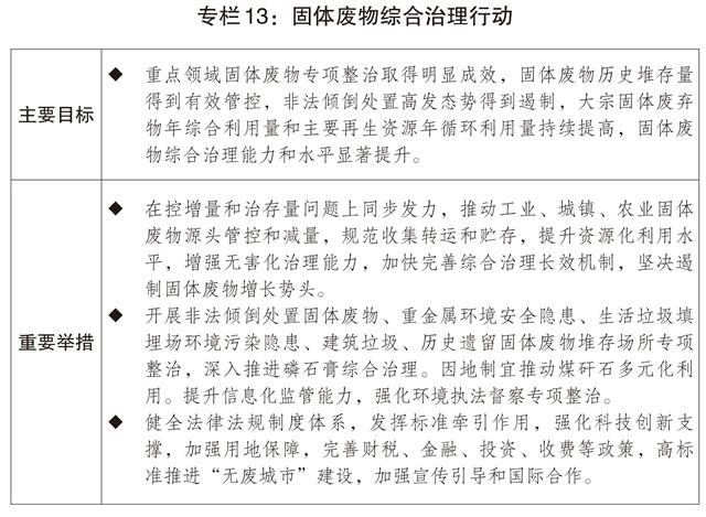 二是持续深入推进污染防治攻坚和生态系统优化。深入打好蓝天、碧水、净土保卫战,实施固体废物综合治理行动,强化新污染物治理。开展城镇环境基础设施提质增效行动。全面推进美丽河湖、幸福河湖建设。推进水土流失综合治理。继续支持沿江化工腾退地块土壤污染治理和磷石膏污染综合整治。统筹推进重要生态系统保护和修复重大工程,扎实推进“三北”工程三大标志性战役,实施自然保护地整合优化。深入推进生态产品价值实现。完善多元化生态补偿机制,推动生态环境领域法律法规制修订。持续建设国家生态文明试验区,建设美丽中国先行区。