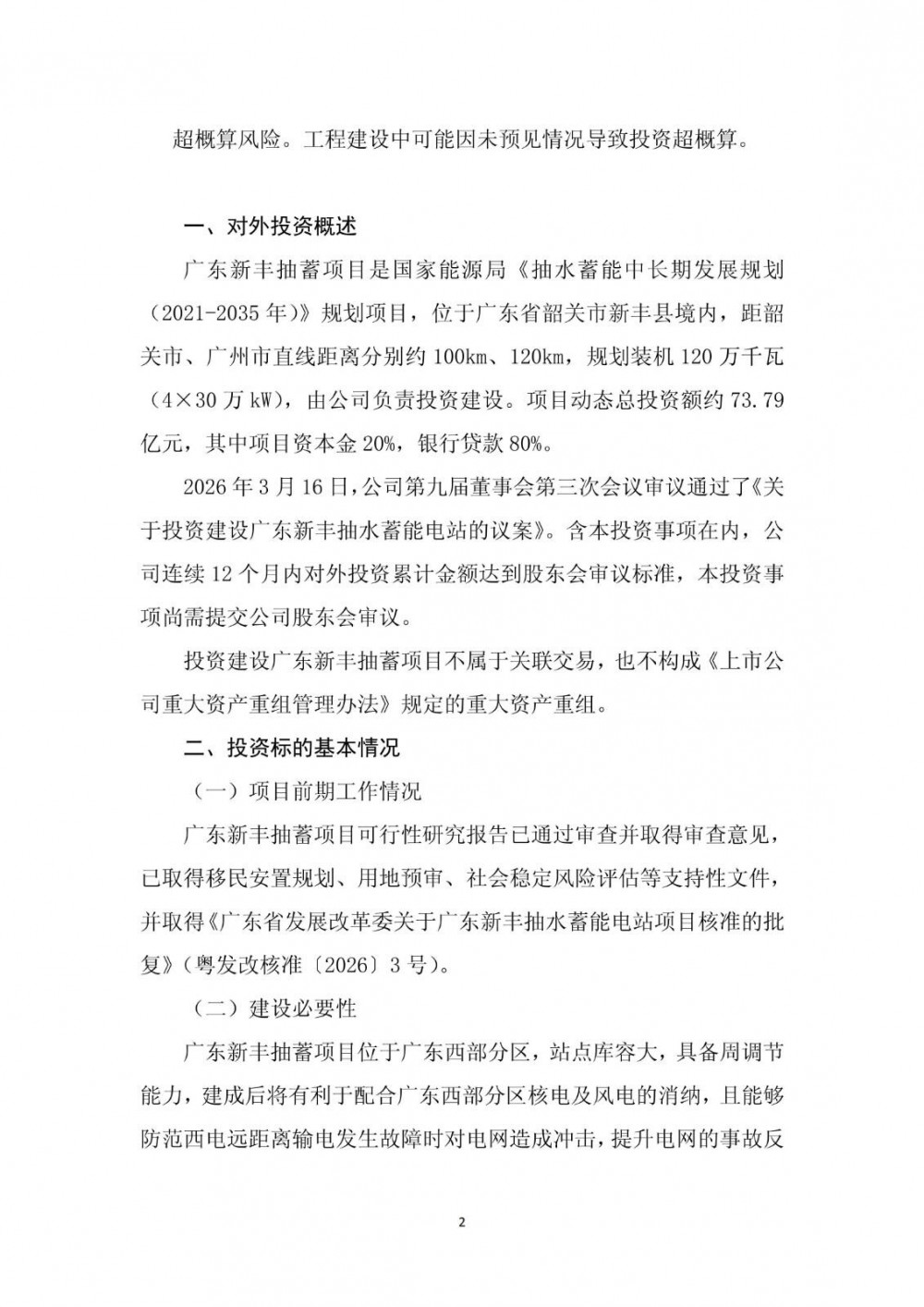 3月16日,南网储能发布公告称,拟投资73.79亿元建设广东新丰抽水蓄能电站项目。
