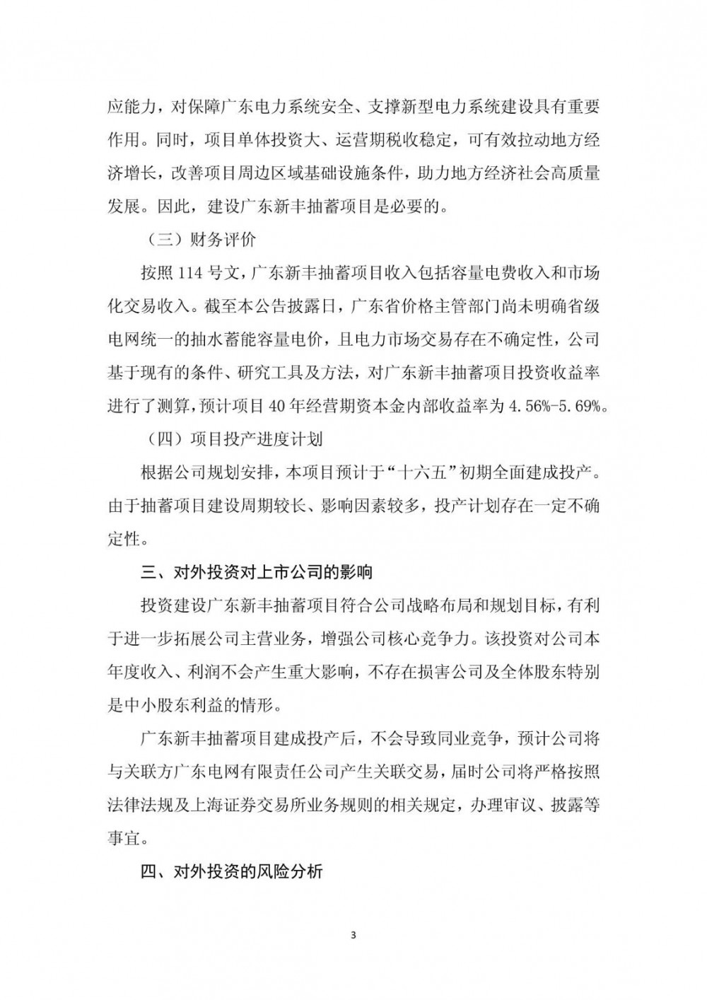 南网储能表示,投资建设广东新丰抽蓄项目符合公司战略布局和规划目标,有利于进一步拓展公司主营业务,增强公司核心竞争力。该投资对公司本年度收入、利润不会产生重大影响,不存在损害公司及全体股东特别是中小股东利益的情形。广东新丰抽蓄项目建成投产后,不会导致同业竞争,预计公司将与关联方广东电网有限责任公司产生关联交易,届时公司将严格按照法律法规及上海证券交易所业务规则的相关规定,办理审议、披露等事宜。