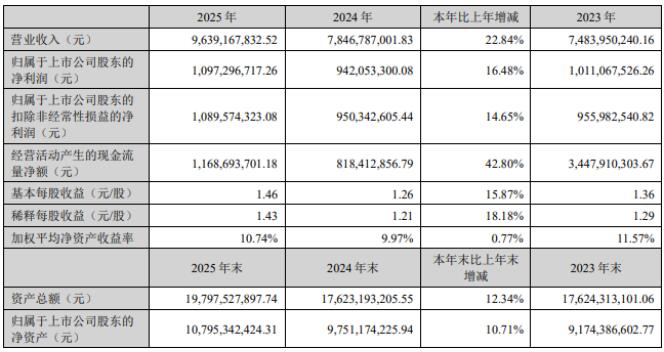 3月23日,新宙邦发布2025年年度报告。报告期内,公司实现营业收入963,916.78万元,同比上升22.84%;实现营业利润129,280.51万元,同比上升17.36%,归属于上市公司股东的净利润109,729.67万元,同比上升16.48%。2025年公司紧密围绕战略目标和年度经营计划有序开展工作,聚焦主营业务和战略客户,加大市场开发,抓住行业市场机遇,对内深化提效降本措施,促进重点项目经营效益提升,加强运营管控防范经营风险,实现经营业绩稳健增长。