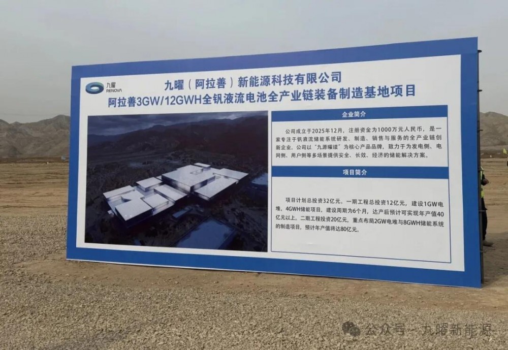 2026年3月27日,在“双碳”目标纵深推进、新型储能产业步入规模化发展的关键节点,九曜(阿拉善)新能源科技有限公司的全钒液流电池全产业链装备制造基地项目开工仪式在内蒙古阿拉善高新区隆重举行。这一总投资32亿元的重大项目落地,标志着阿拉善盟在储能装备制造领域实现“零的突破”,为地区绿色低碳转型按下“快进键”,也彰显了九曜新能源以技术创新驱动长时储能市场变革的决心。