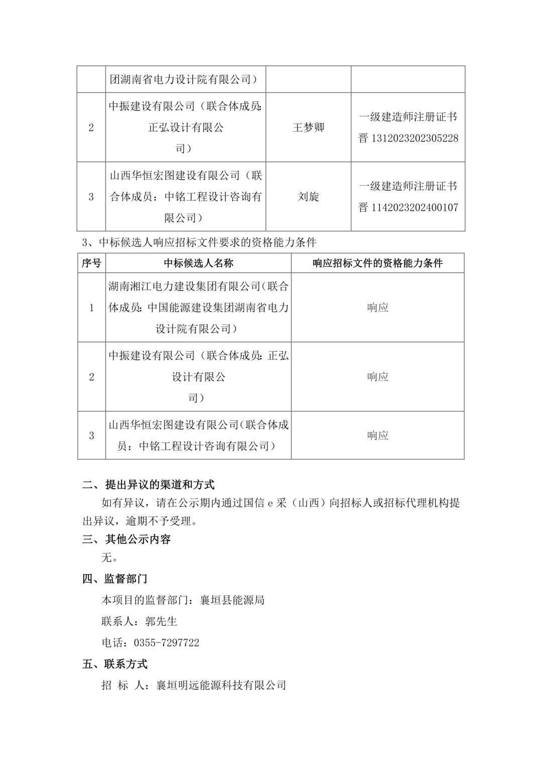 第3中标候选人为山西华恒宏图建设有限公司(联合体成员:中铭工程设计咨询有限公司)投标报价932000000元,单价为1.165元/Wh。
