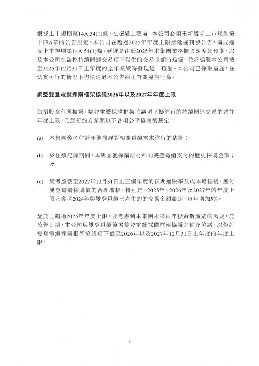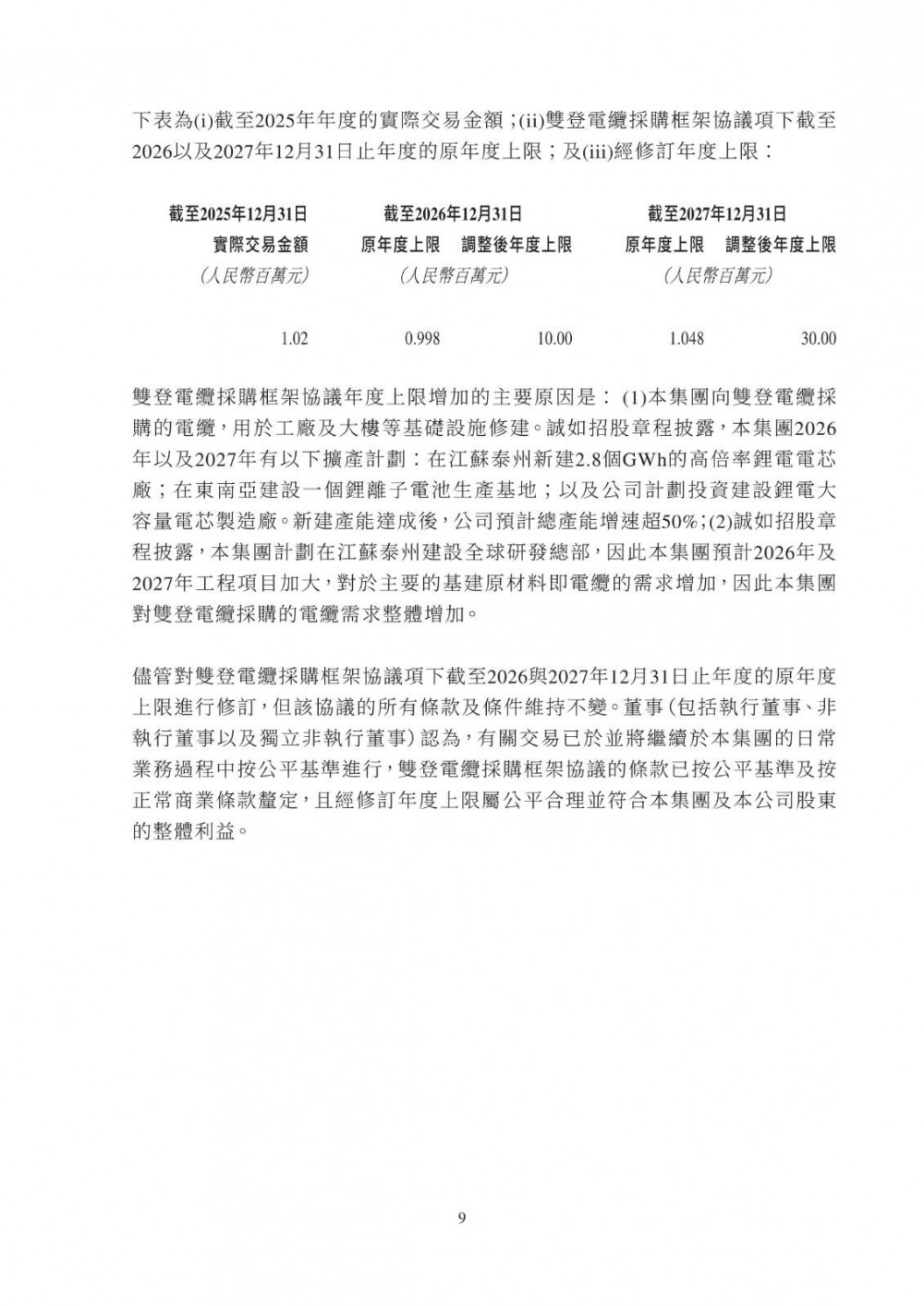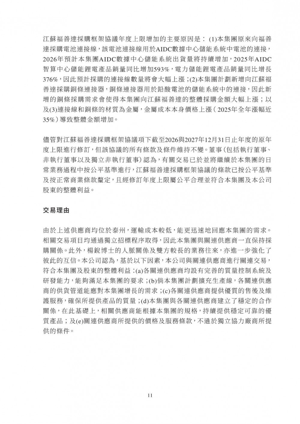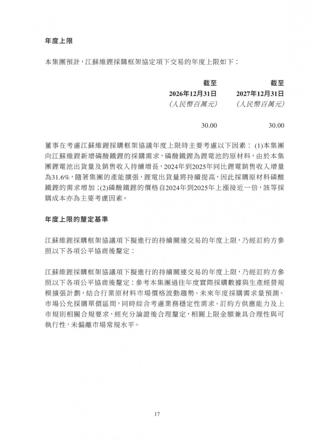 3月25日,双登股份发布公告称,公司于2026年3月25日与江苏维锂签订《江苏维锂采购框架协议》,协议自签署日起生效,有效期两年。合作内容包括磷酸铁锂等原材料采购、产品销售、加工服务及仓储物流服务;合作范围覆盖公司日常生产经营中持续采购需求,依托独立招标程序及市场化定价机制(参照市场公允价格、独立第三方报价、成本加成或双方协商),确保交易条款不逊于与独立第三方同类交易。该交易属持续关连交易,年度上限适用百分比率介于0.1%至5%之间,获豁免刊发通函及独立股东批准,仅需履行申报、公告及年度审阅义务。