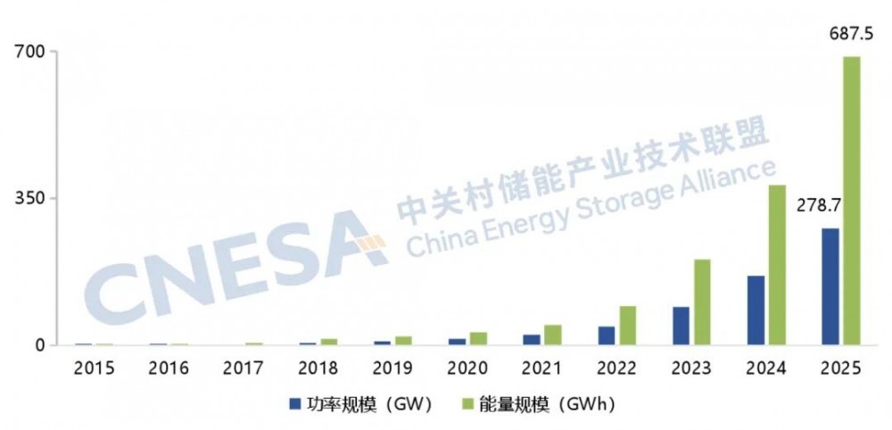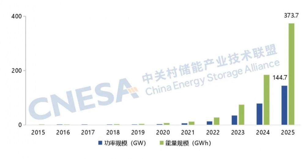 2025年,全球储能市场继续保持高速发展态势,全年新增投运电力储能项目装机规模首次突破100GW,达到123.9GW,同比增长49.3%;其中,新型储能新增装机占比超过90%,达到113.3GW/305.8GWh,同比增长52.9%/72.0%。