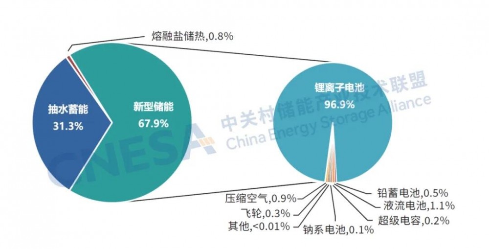 图3:中国电力储能市场累计装机规模(截至2025年底)单位:MW%
