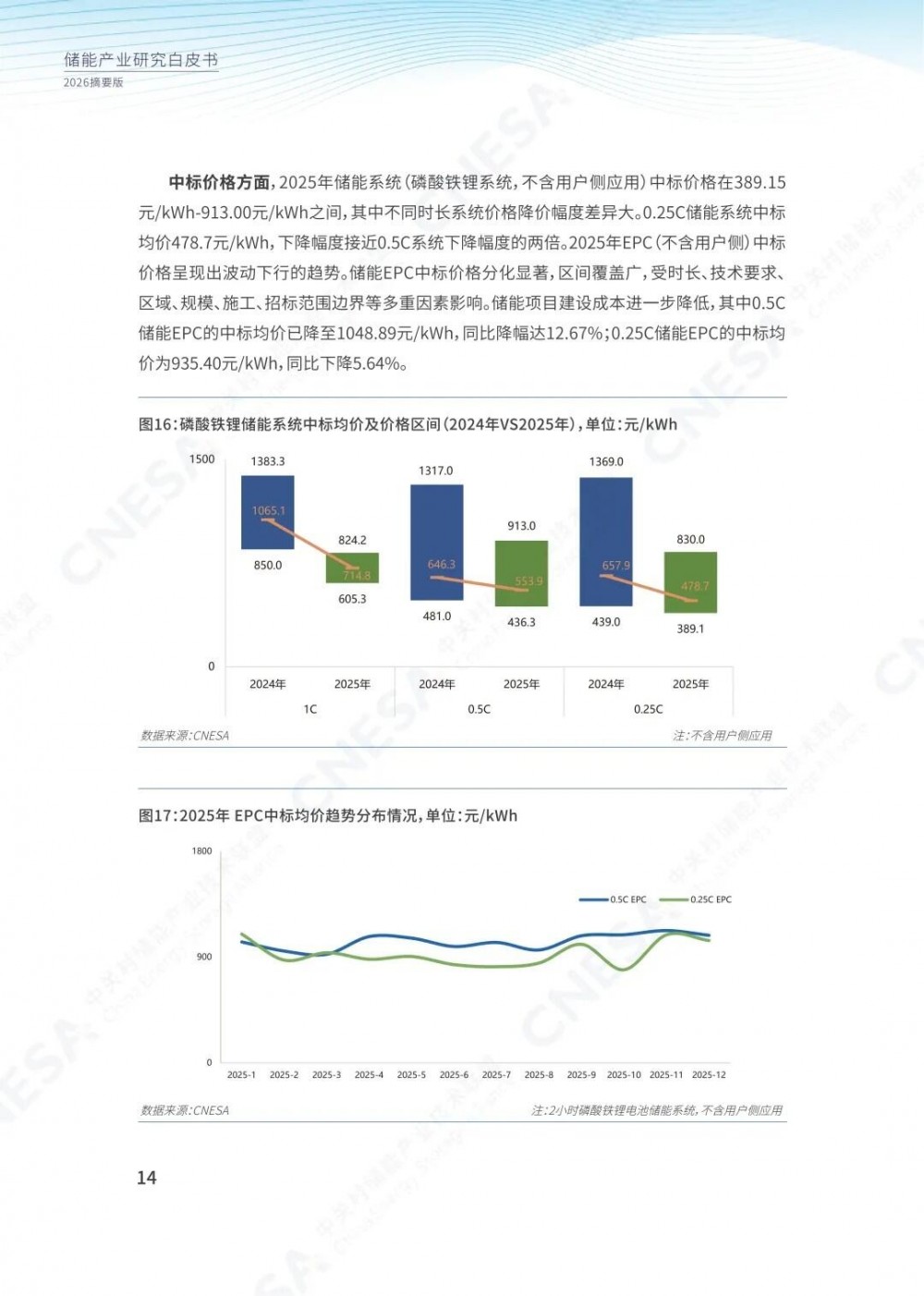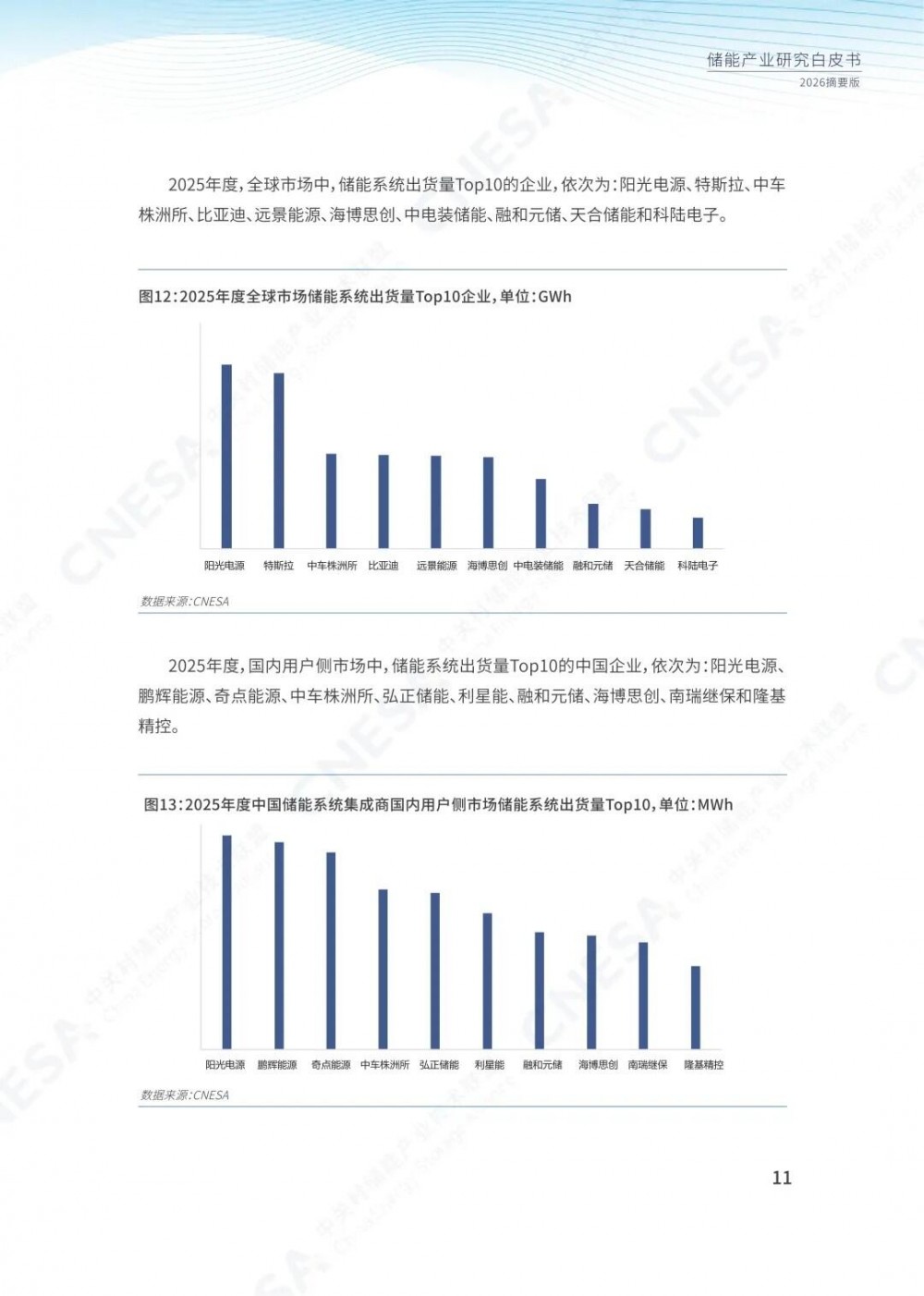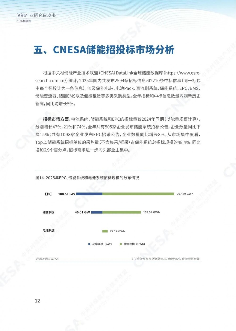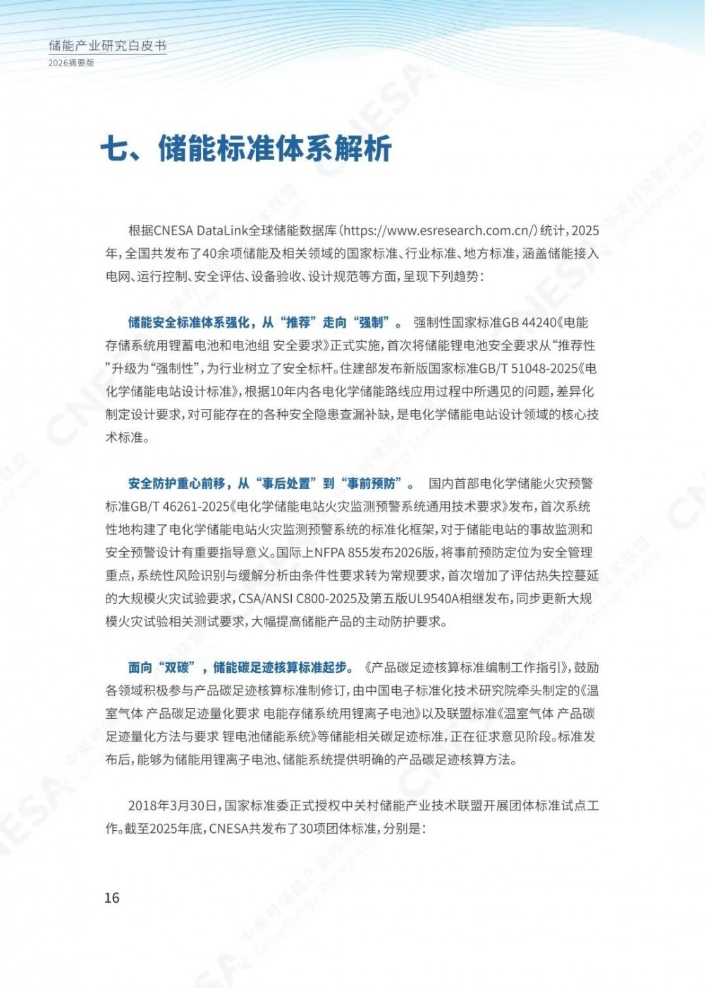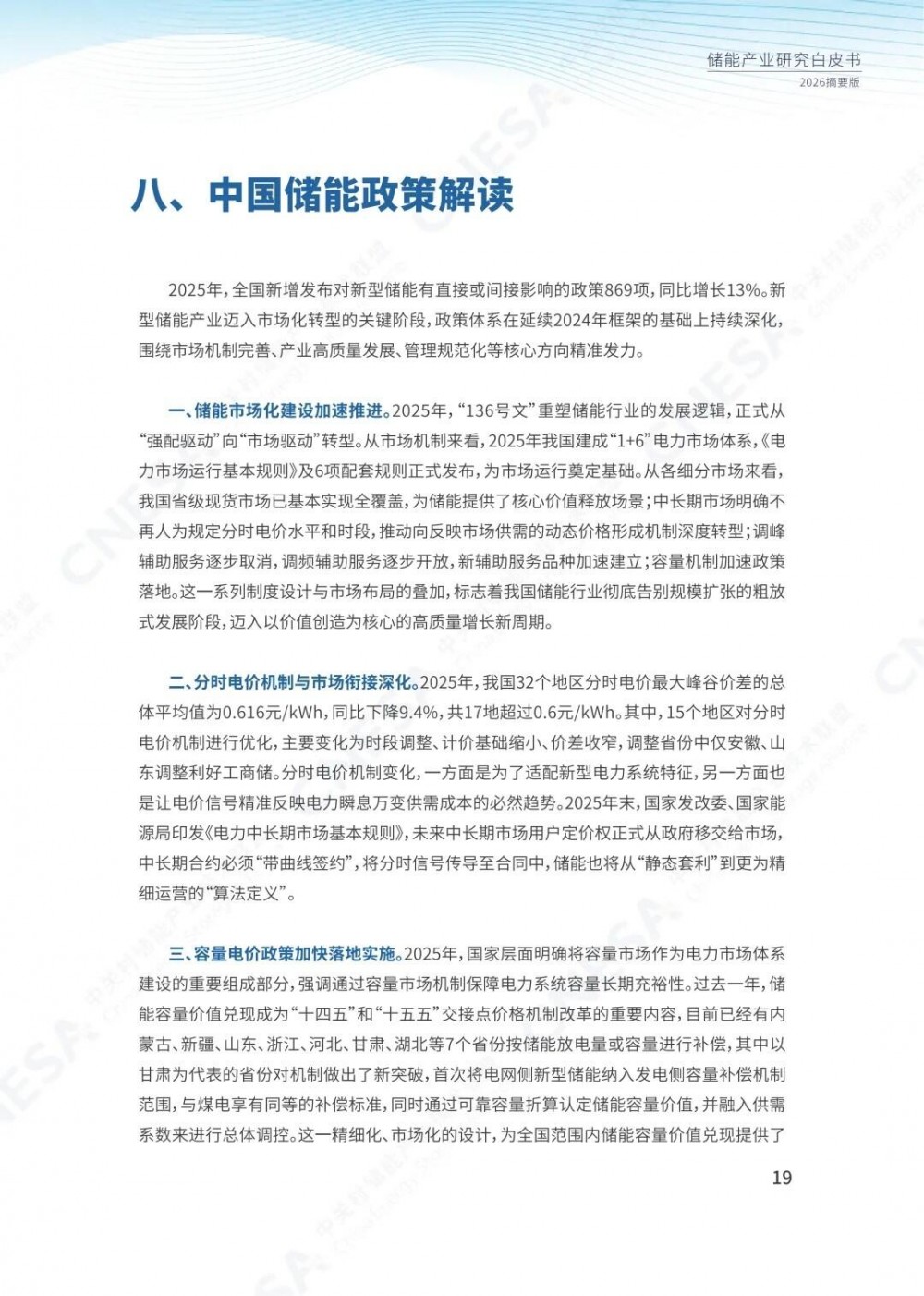 《储能产业研究白皮书2026》系统梳理并深入总结了全球主要国家和地区的市场规模、招中标市场及价格、企业出货与装机、典型企业订单与产品、政策与电力市场规则、储能安全与标准、投融资进展等多个维度,并结合当前产业格局与前沿技术趋势,对未来市场机遇与发展规模作出了前瞻性研判。