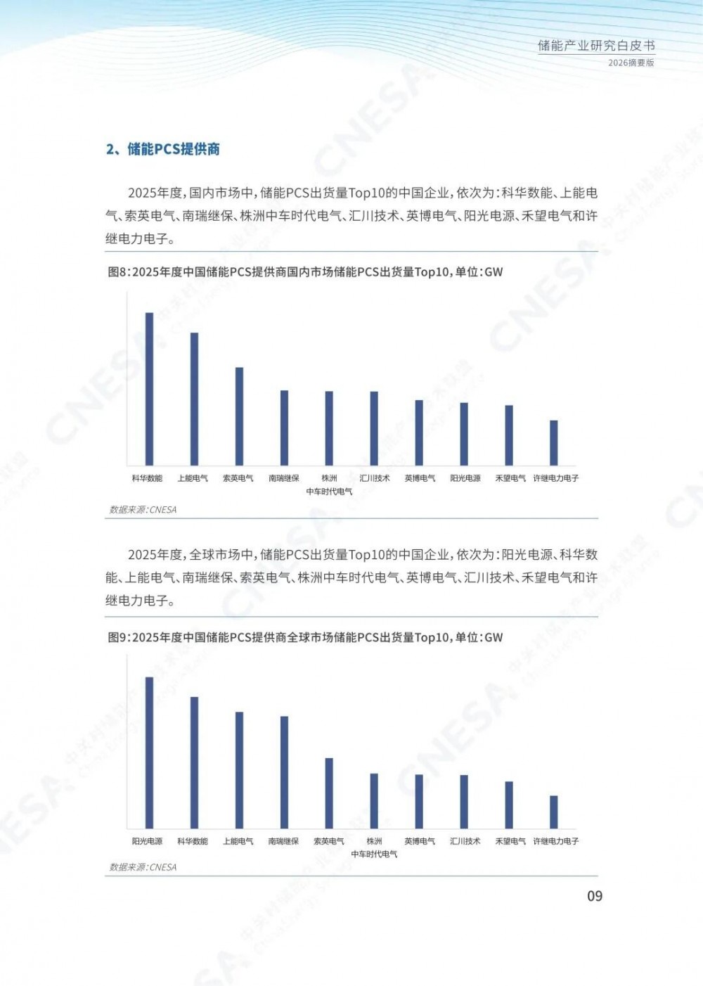 2025年度,国内市场中,储能PCS出货量Top10的中国企业,依次为:科华数能、上能电气、索英电气、南瑞继保、株洲中车时代电气、汇川技术、英博电气、阳光电源、禾望电气和许继电力电子。