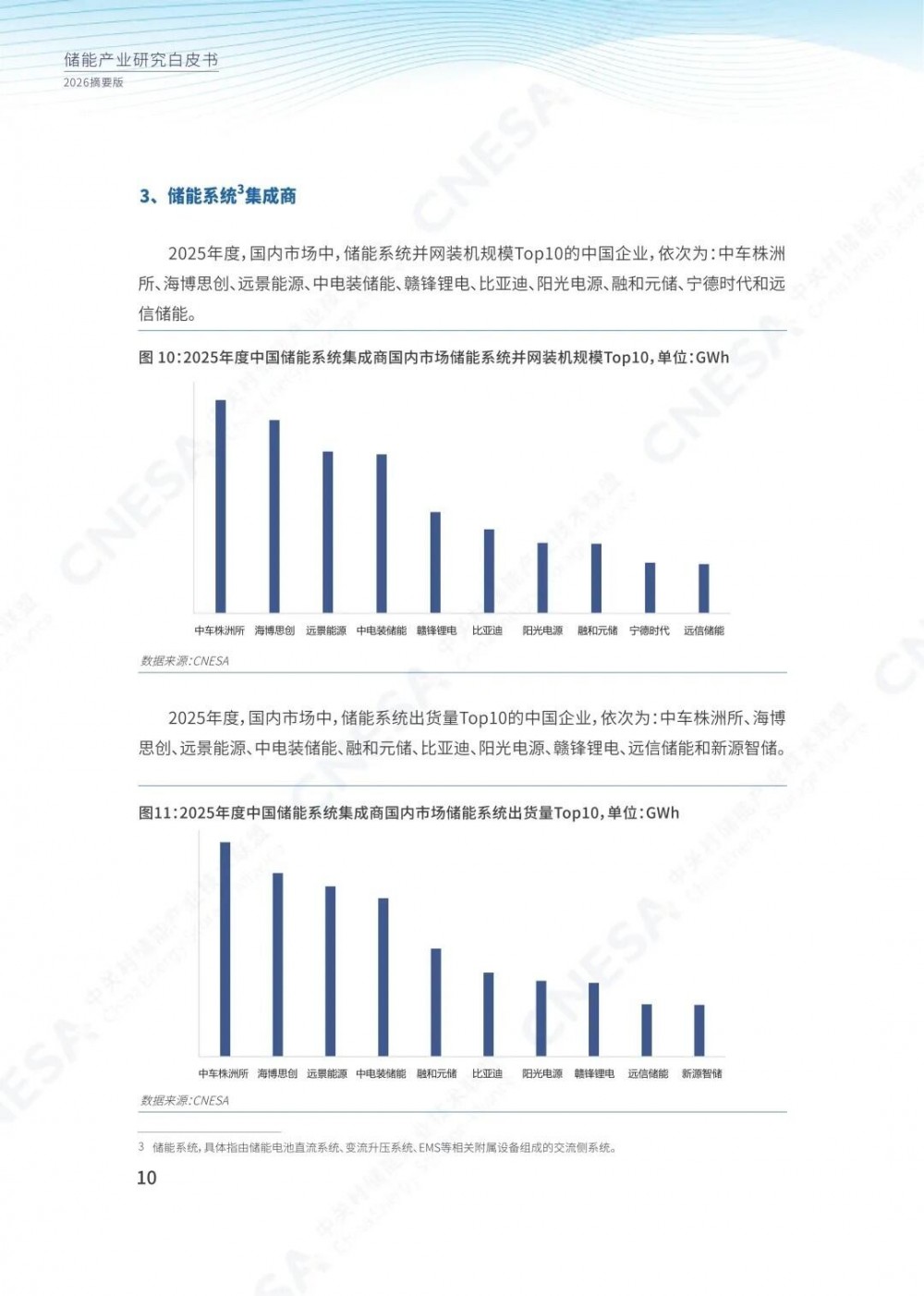 2025年度,国内市场中,储能系统出货量Top10的中国企业,依次为:中车株洲所、海博思创、远景能源、中电装储能、融和元储、比亚迪、阳光电源、赣锋锂电、远信储能和新源智储。