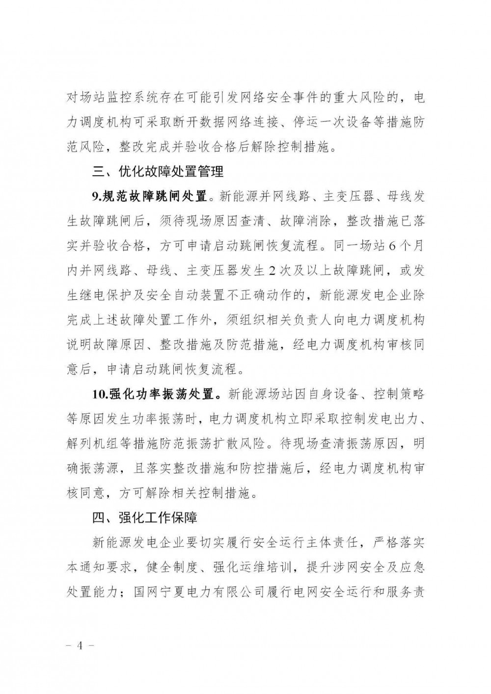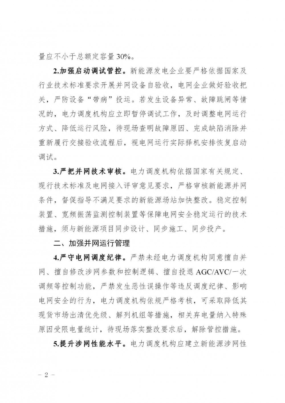 加强并网运行管理中提到,严守电网调度纪律。严禁未经电力调度机构同意擅自并网、擅自修改涉网参数和控制逻辑、擅自投退AGC/AVC/一次调频等控制功能,严禁发生恶性误操作等违反调度纪律、影响电网安全的行为,电力调度机构依规严格考核,可采取降低其现货市场出清优先级、解列机组等措施,相关弃电量纳入特殊原因受限电量统计,待现场落实整改要求后,解除管控措施。