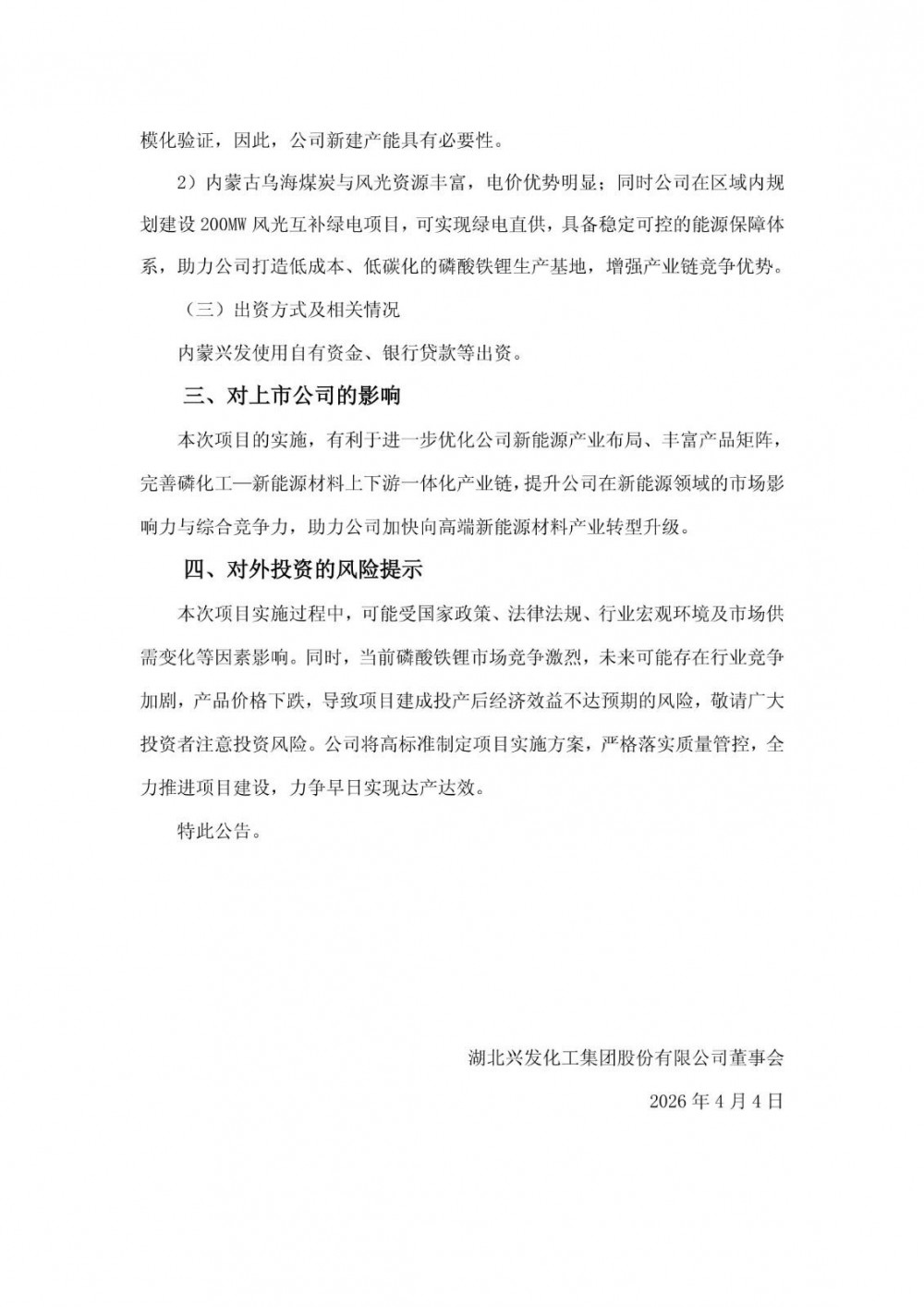 兴发集团表示,本次项目的实施,有利于进一步优化公司新能源产业布局、丰富产品矩阵,完善磷化工—新能源材料上下游一体化产业链,提升公司在新能源领域的市场影响力与综合竞争力,助力公司加快向高端新能源材料产业转型升级。