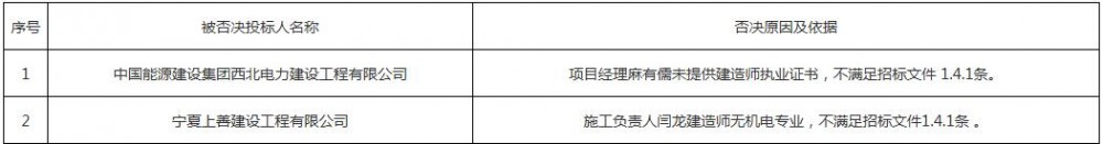 三、投标文件被否决的投标人名称、否决原因及其依据(可选):