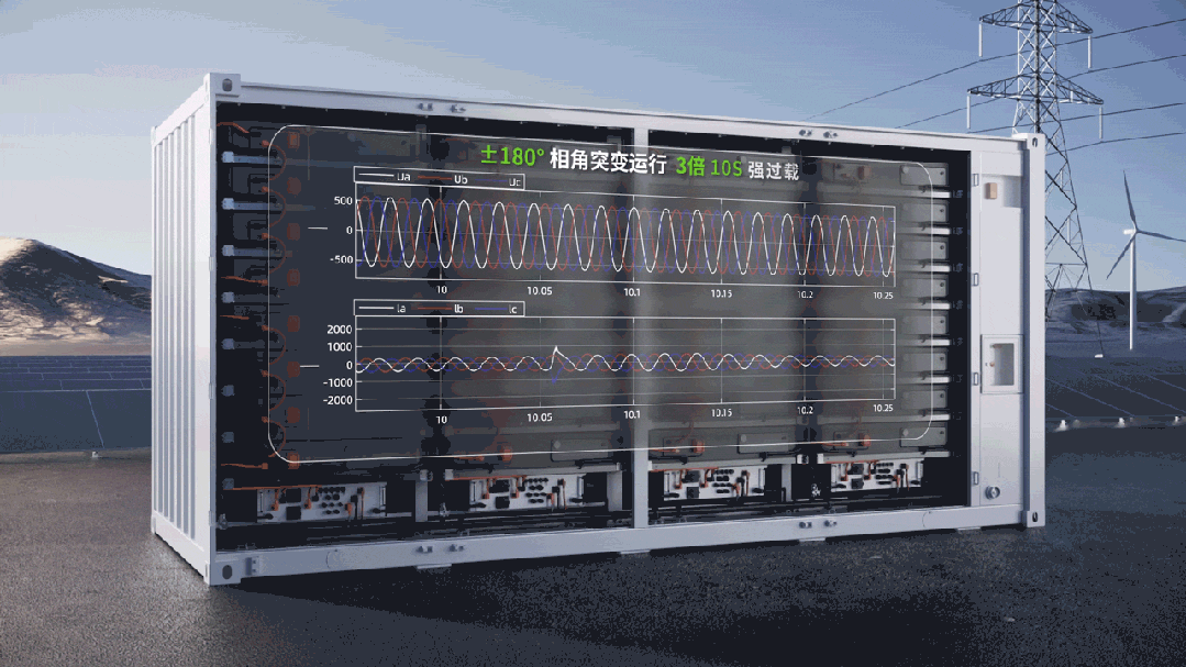 随着新能源渗透率提升,电网逐渐呈现“弱电网”特征。PCS的构网能力成为衡量其核心性能的关键指标。禾迈新品则天生具备强大的电网适应性,具备3倍10秒的强过载能力,能够在电网发生暂态故障时,提供强有力的无功支撑和短路电流,帮助电网快速恢复稳定;支持SCR(短路比)低至1.0的极弱电网环境,这意味着即使在高阻抗、低惯量的偏远地区电网中,也能稳定并网运行。同时,它能承受±180°的相角突变,无惧电网的剧烈波动。