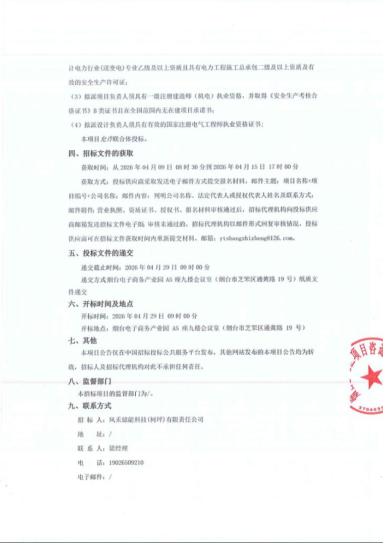 4月8日,风禾储能科技(柯坪)有限责任公司东方旭能柯坪20万千瓦/80万千瓦时独立式储能项目、东方旭能柯坪20万千瓦/80万千瓦时独立式储能项目(二期)工程总承包(EPC)项目招标公告发布。