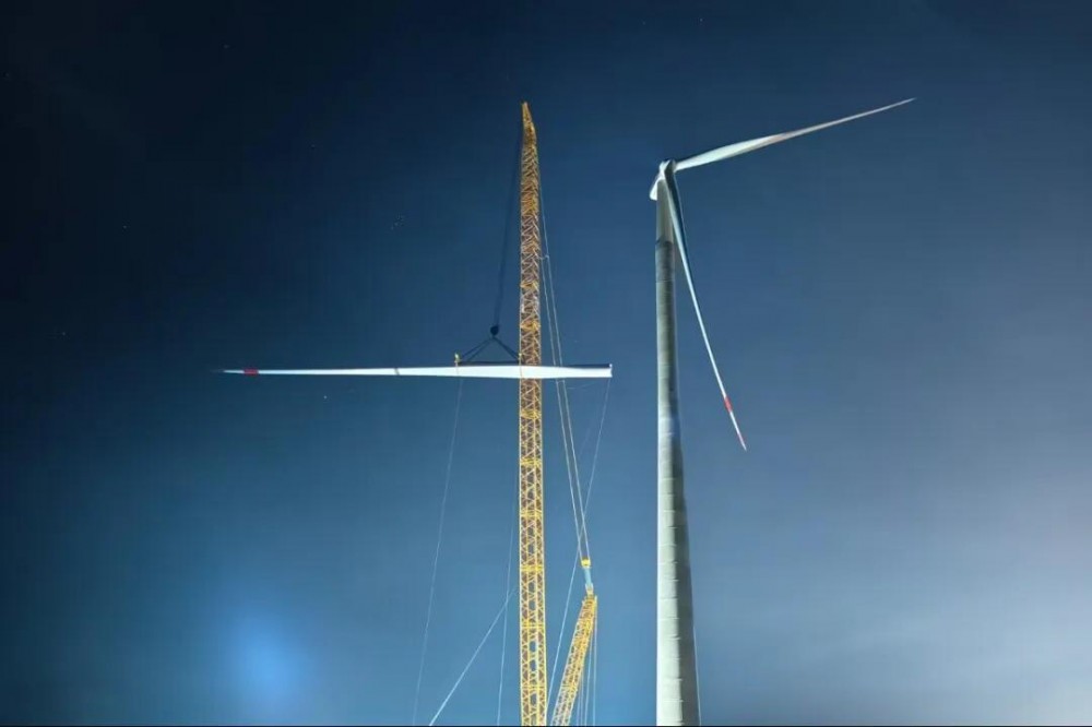 作为通河县打造“清洁能源新城”的重要工程之一,该项目共安装35台5.56MW和1台5.4MW的风电机组,并配套建设储能系统。投运后每年可发电约5.8亿千瓦时,与等量火电相比可节约标准煤约17.7万吨,减排二氧化碳约50.3万吨,对保障当地电力供应、助力新型能源体系建设具有重要意义。