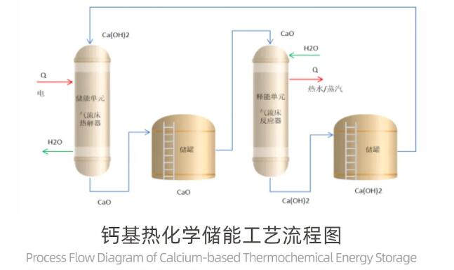 钙基热化学储能依托氧化钙/氢氧化钙可逆化学反应实现能量存储与释放,具备高温适配(400℃-600℃)、储能密度高、原料成本低廉、循环寿命长、安全环保、可常温长期储热等突出优势,能够有效弥补传统储能技术在温度上限、存储时长、经济性与规模化应用上的局限。项目将重点攻克钙基材料循环稳定性、反应动力学优化、高效反应器设计、系统集成与低碳耦合控制等关键技术瓶颈,构建集材料、装备、系统、应用于一体的综合节能低碳技术体系。