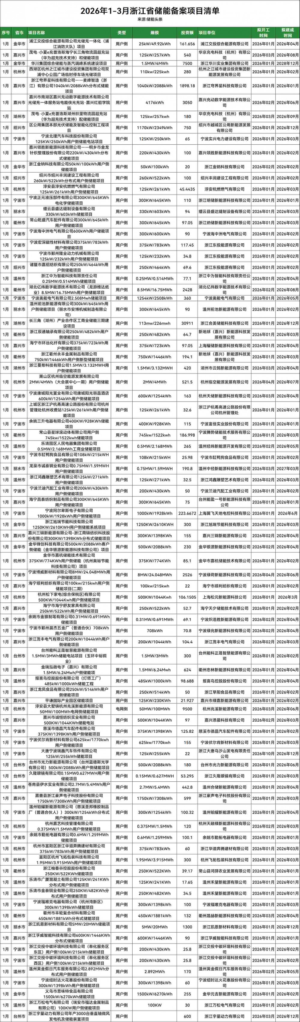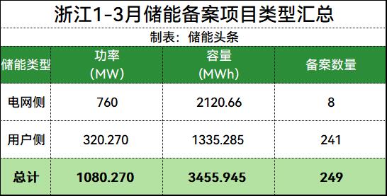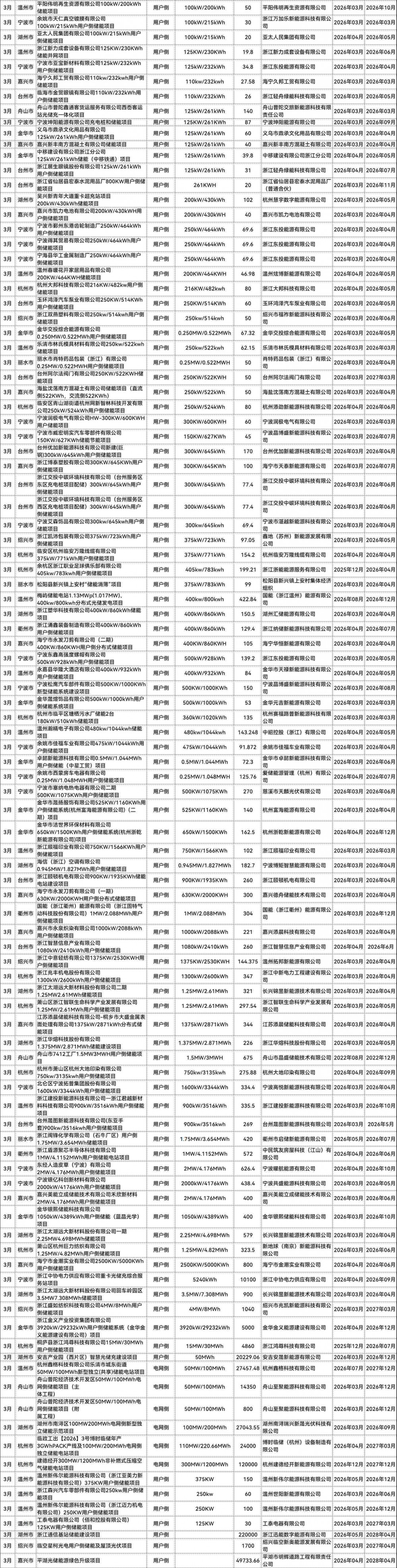 附浙江1-3月储能备案项目清单:
