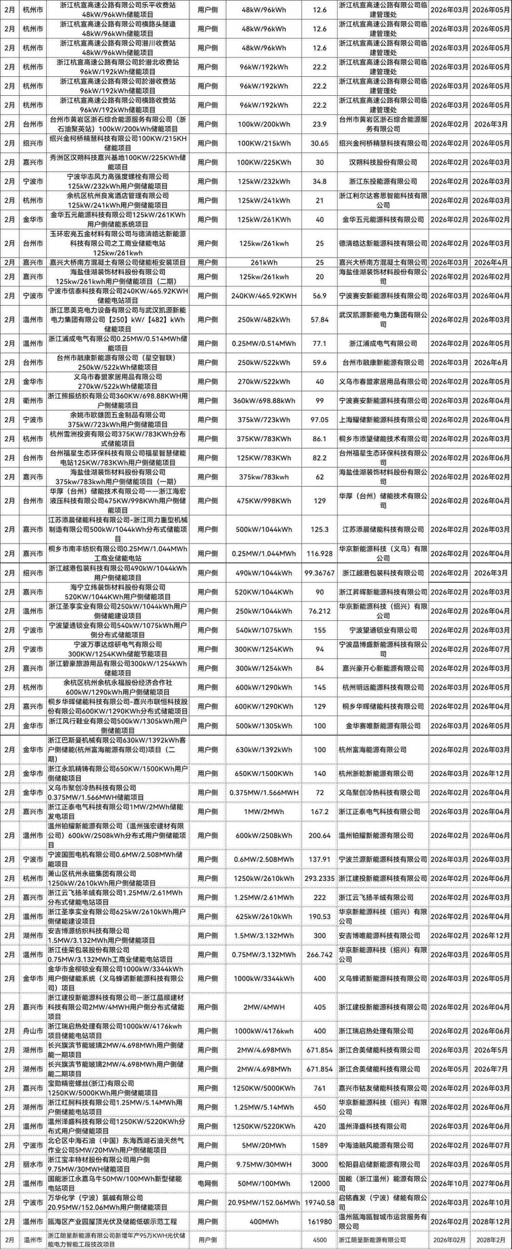 浙江建投新能源科技有限公司、浙江合美储能科技有限公司、长兴锦昱新能源技术有限公司、宁波晶博盛新能源科技有限公司备案3个项目;