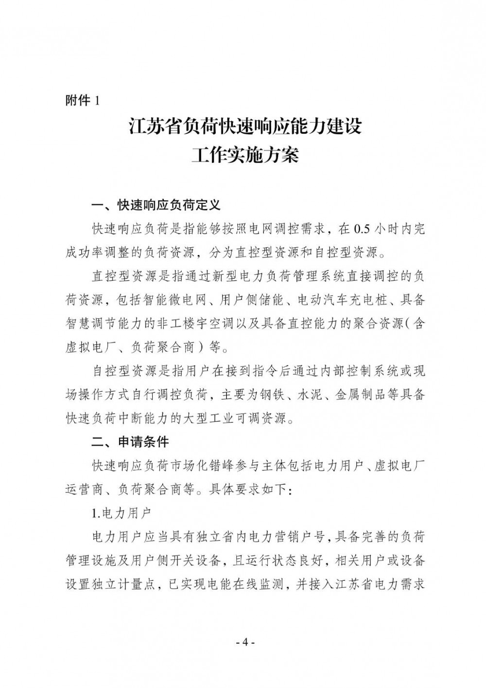 附件《江苏省负荷快速响应能力建设工作实施方案》明确,在0.5小时内完成功率调整的负荷资源,分为直控型资源和自控型资源。