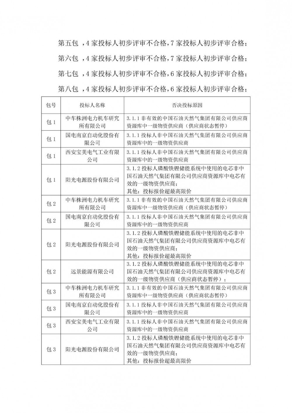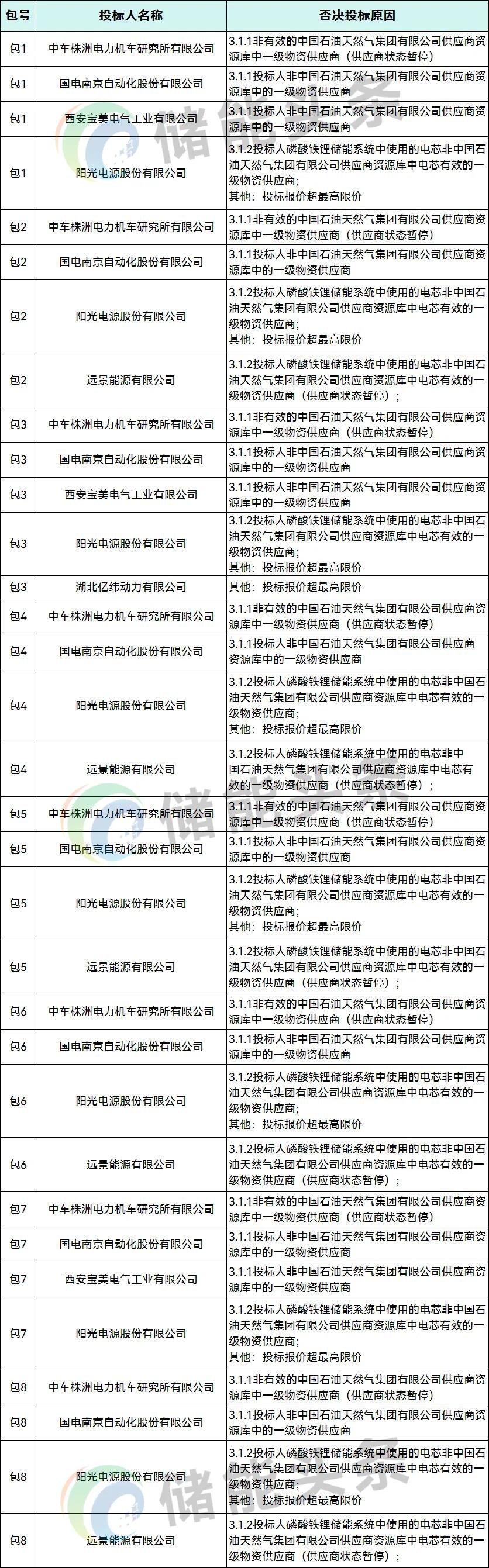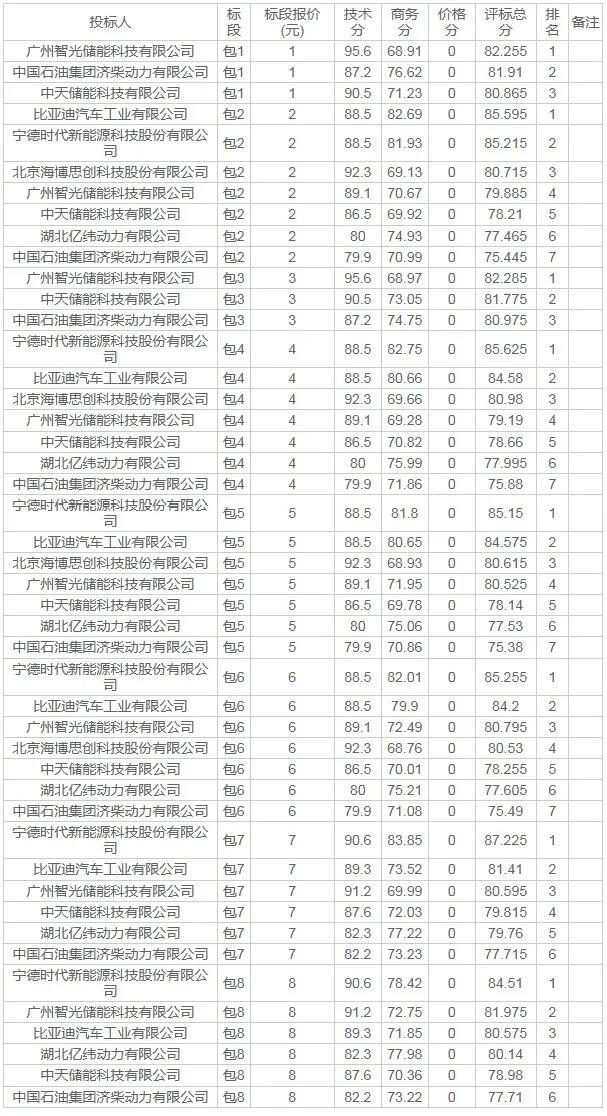 广州智光储能科技有限公司、中国石油集团济柴动力有限公司、中天储能科技有限公司入围8个标包;