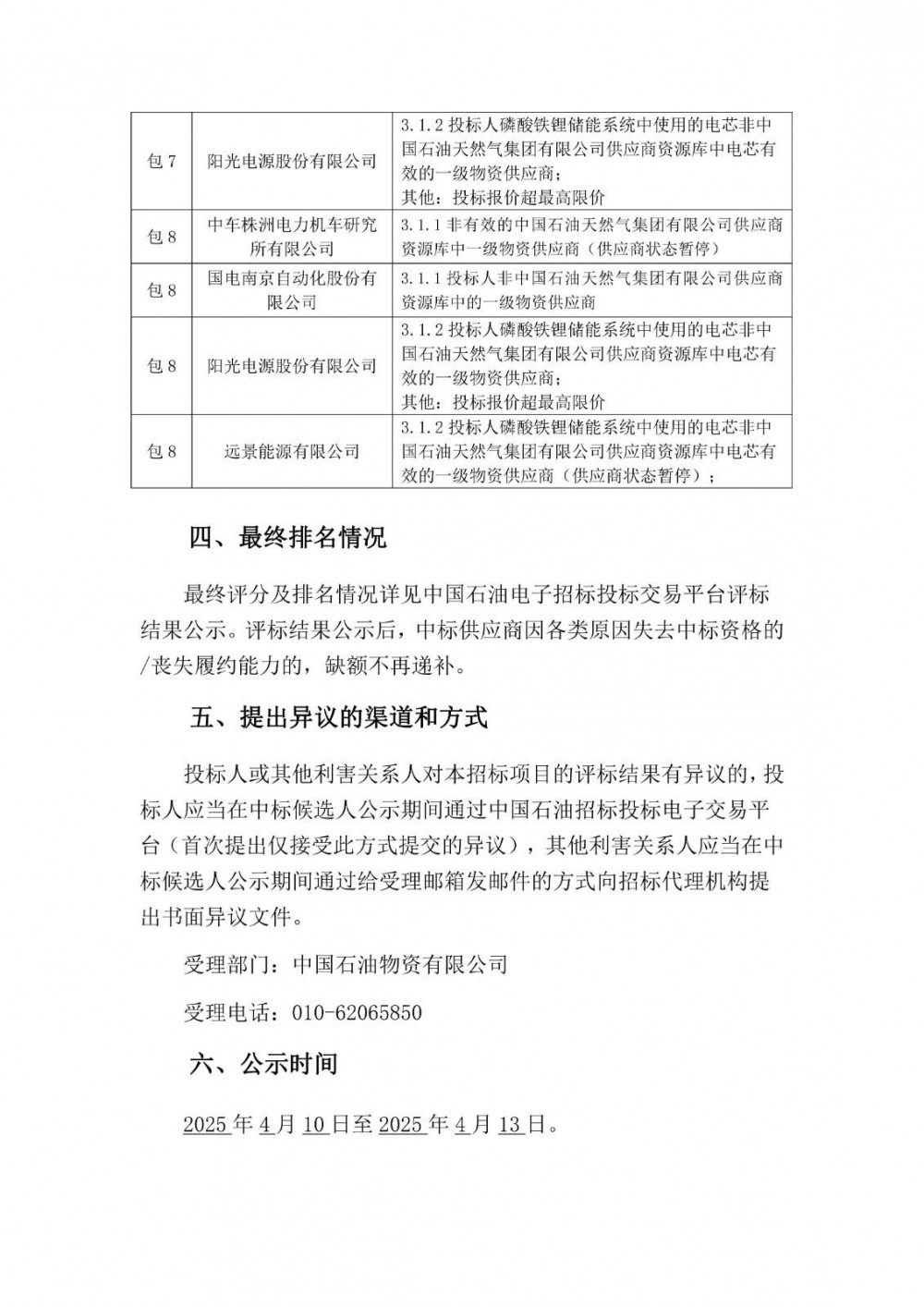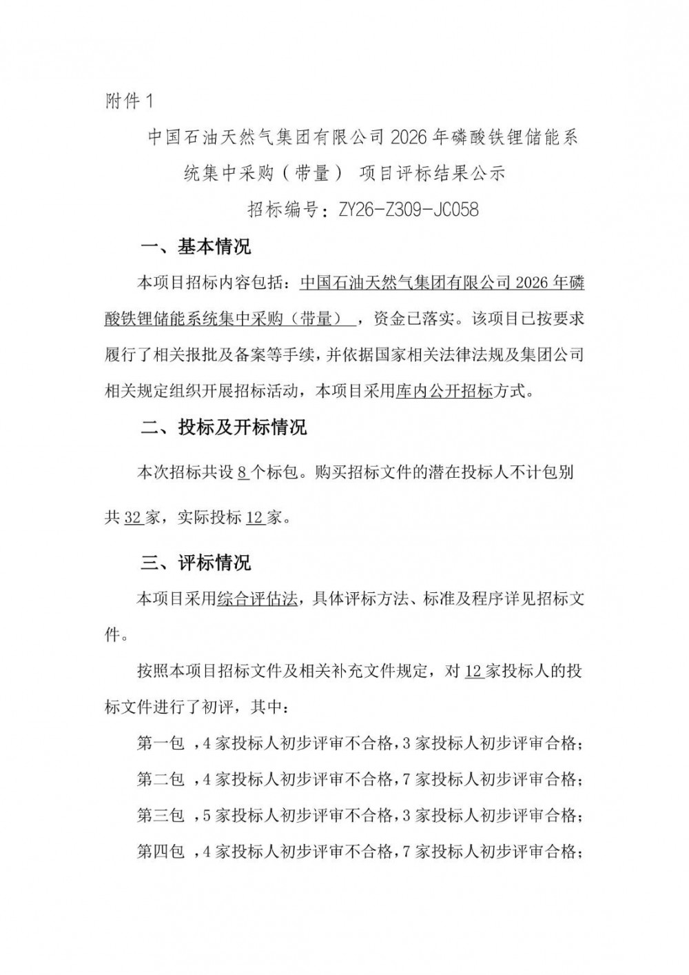 能源圈获悉,4月10日,中国石油天然气集团有限公司2026年磷酸铁锂储能系统集中采购(带量)中标候选人公示。