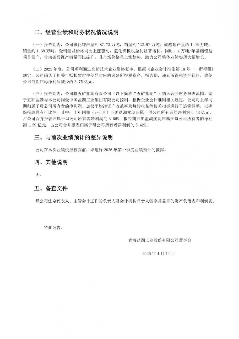 4月13日,盐湖股份发布2026年第一季度业绩快报。2026年第一季度,公司实现营业收入64.32亿元,同比增长94.89%;归母净利润29.39亿元,同比增长147.44%;扣非净利润28.14亿元,同比增长137.01%。