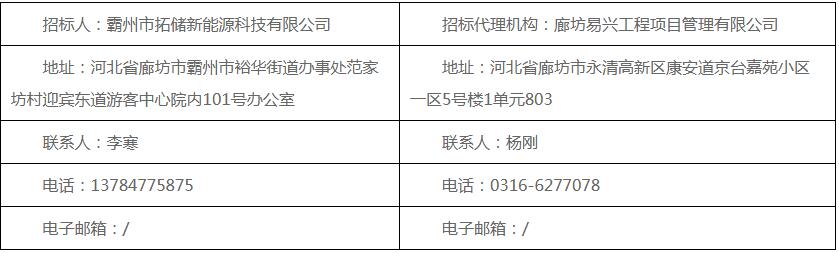 招标项目名称:霸州市拓储新能源科技有限公司新建180MW-720MWH 磷酸铁锂+20MW-200KWH超级电容独立储能电站项目