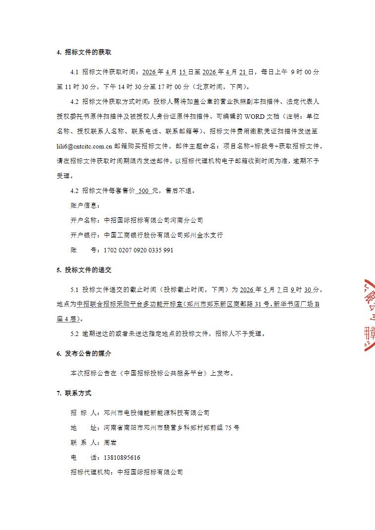 4月14日,邓州市裴营乡200MW/400MWh共享储能项目设计施工总承包及施工监理招标公告发布。