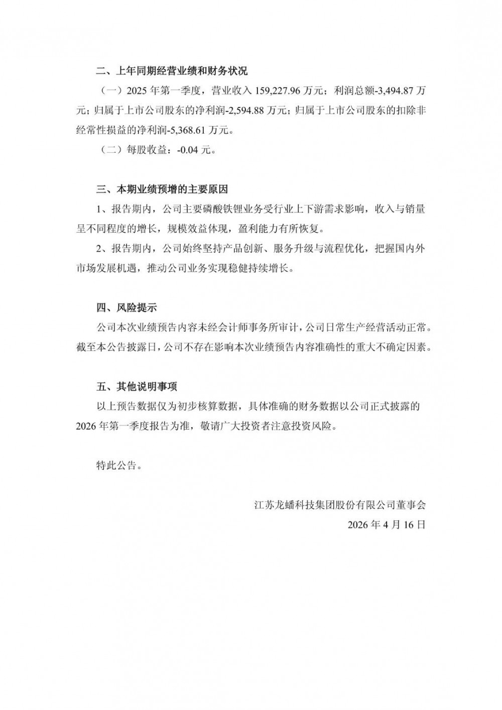 4月15日,龙蟠科技发布2026年第一季度业绩预增公告。
