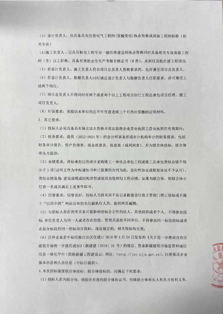 业绩要求:投标承担过的设计采购施工一体化总承包工程或施工总承包类似业绩不得少于1项(证明文件为中标通知书和已签署的合同为准,意向性协议或框架协议不予认可)。类似业绩是指建设规模或结构类型或使用功能相似工程业绩。如果为联合体,则联合体中任意一名成员满足上述条件即可。