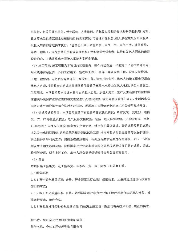 投标人负责本项目设计、采购、施工(BPC)总承包,包括协助甲方完成本项目建设所需的前期开工手续、建设手续、土地手续等,设计、施工、设备采购工作,以及工程交接后的项目文件归档、设备检测、竣工验收、并网、建模及涉网试验,缺陷责任期间保修并修补其任何缺陷、保修期保修,用户培训,对BPC总承包工程的技术、质量、安全、环保、文明、进度、费用等全面负责。