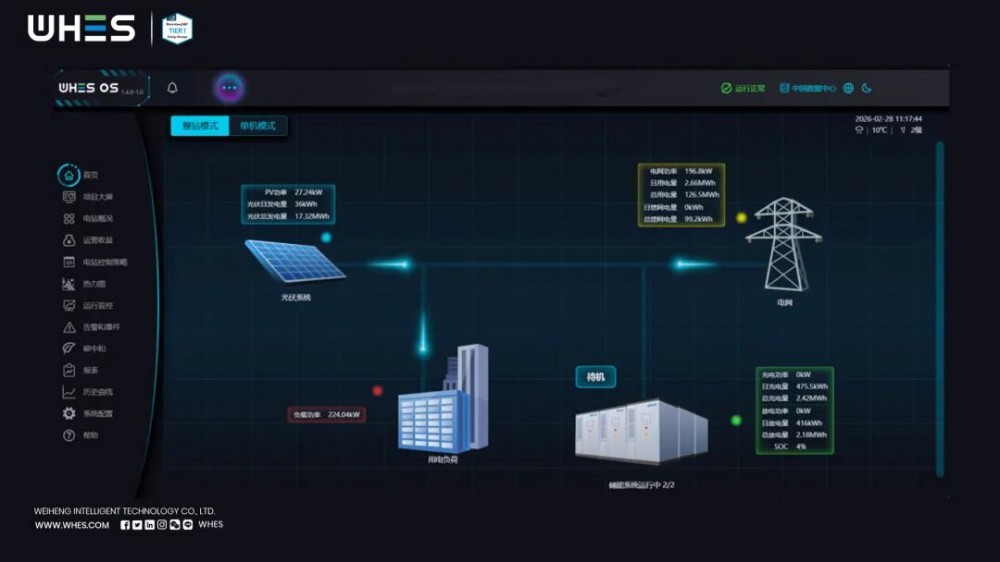 WHES OS融合AI边缘控制与云端SaaS服务,具备毫秒级响应、智能策略优化等核心能力。通过集群管理模式,实现对7座厂储能设备的统一监控与智能调度,结合算法优化充放电策略,最大化挖掘储能资产价值,为项目落地提供核心技术支撑。