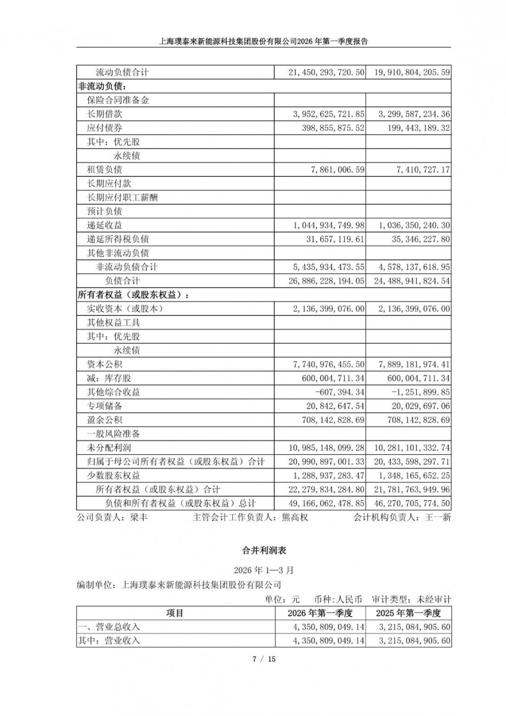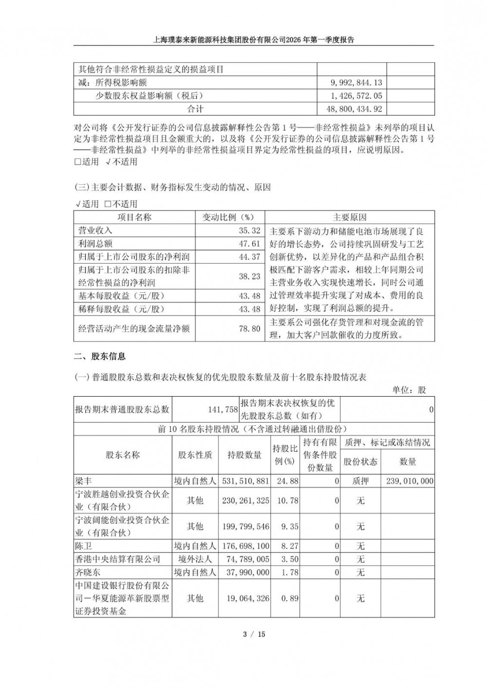 4月22日,璞泰来发布2026年第一季度报告。公司2026年第一季度营业收入达43.51亿元,较上年同期增长35.32%;归属于上市公司股东的净利润为7.04亿元,同比增幅44.37%。