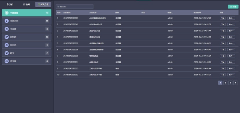 针对风电装备的特点,整合风电设计、机理研究、运维检修等方面的丰富经验,结合大模型技术的风电垂类故障知识库,涵盖了风电装备的各种故障类型、故障原因、故障现象以及修复方法,形成了完整的故障知识体系。在故障预测及故障报警系统在发现设备异常情况产生时,快速定位相关的故障信息、修复建议和操作步骤。同时,知识库还支持智能推理与故障诊断功能,能够根据风电装备的运行数据和故障现象,自动分析故障原因并给出修复建议。