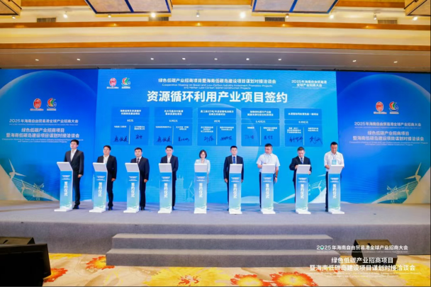 北京公司积极投入海南低碳岛建设,谋划了一批配套项目,本次招商洽谈会聚焦清洁能源、绿色产业、资源循环等,通过项目推介、签约、考察调研,向全球共享海南自贸港区位优势、政策优惠和投资机遇。会议现场签约项目23个,签约金额超140亿元。其中23个签约项目涉及能源绿色低碳转型、资源循环利用产业、重点低碳园区示范三大领域,包含海南省6.6吉瓦时电网侧独立储能项目、三亚海棠湾低碳智慧能源示范区等超十亿元级重大项目。