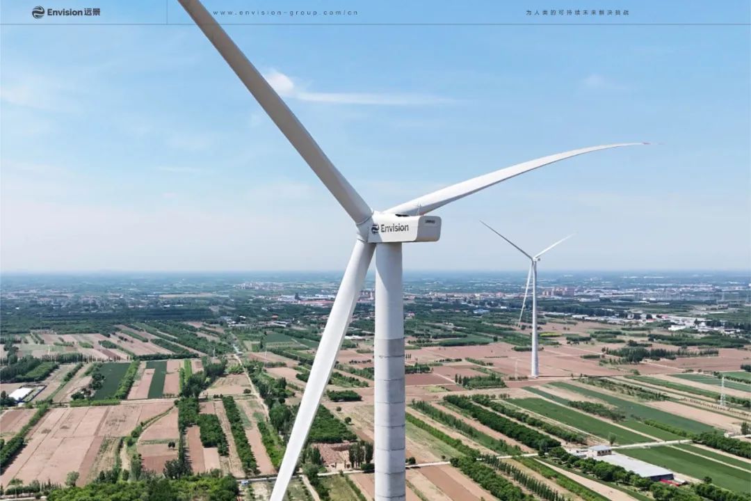 初夏5月,华北平原一马平川、绿意盎然,51台EN-220/6.25与13台EN-182/6.25远景能源智能风机,在河北省沧县的村庄与农田之间悠然转动。自2024年底陆续并网以来,今年1-4月,沧县浮阳风电场实际发电小时数1100小时,可利用率99.8%,推算至完整年满发小时数2600小时,预计比可研发电小时数高15%以上。远景智能风机的高性能、高可靠在中低风速应用场景下再次得到验证。