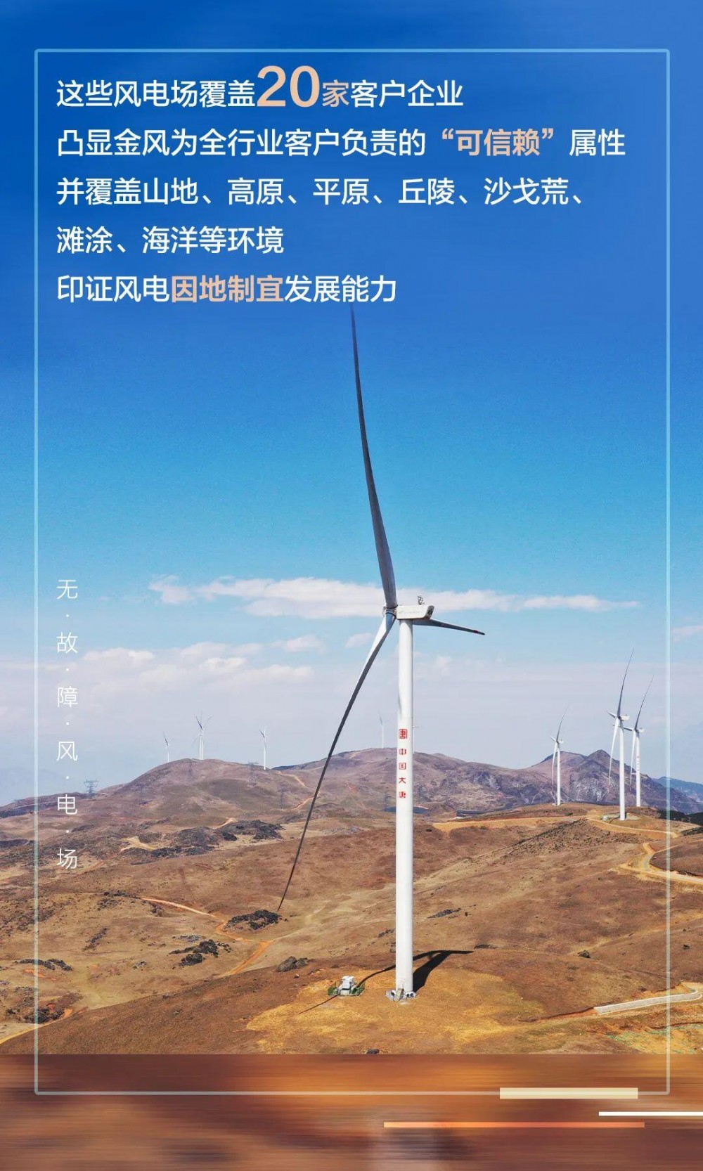 度电成本最优与发电收益稳定始终是投资决策的核心标尺,金风科技将继续打磨产品与服务,助力客户打造更多“无故障风电场”,使每一个风电场都风险可控、回报可期。